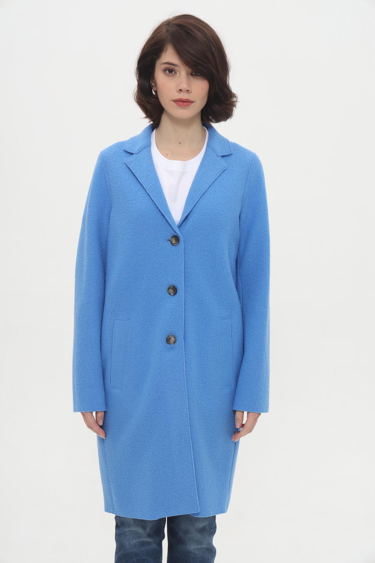 Пальто Oui голубое с тремя пуговицами и накладными карманами