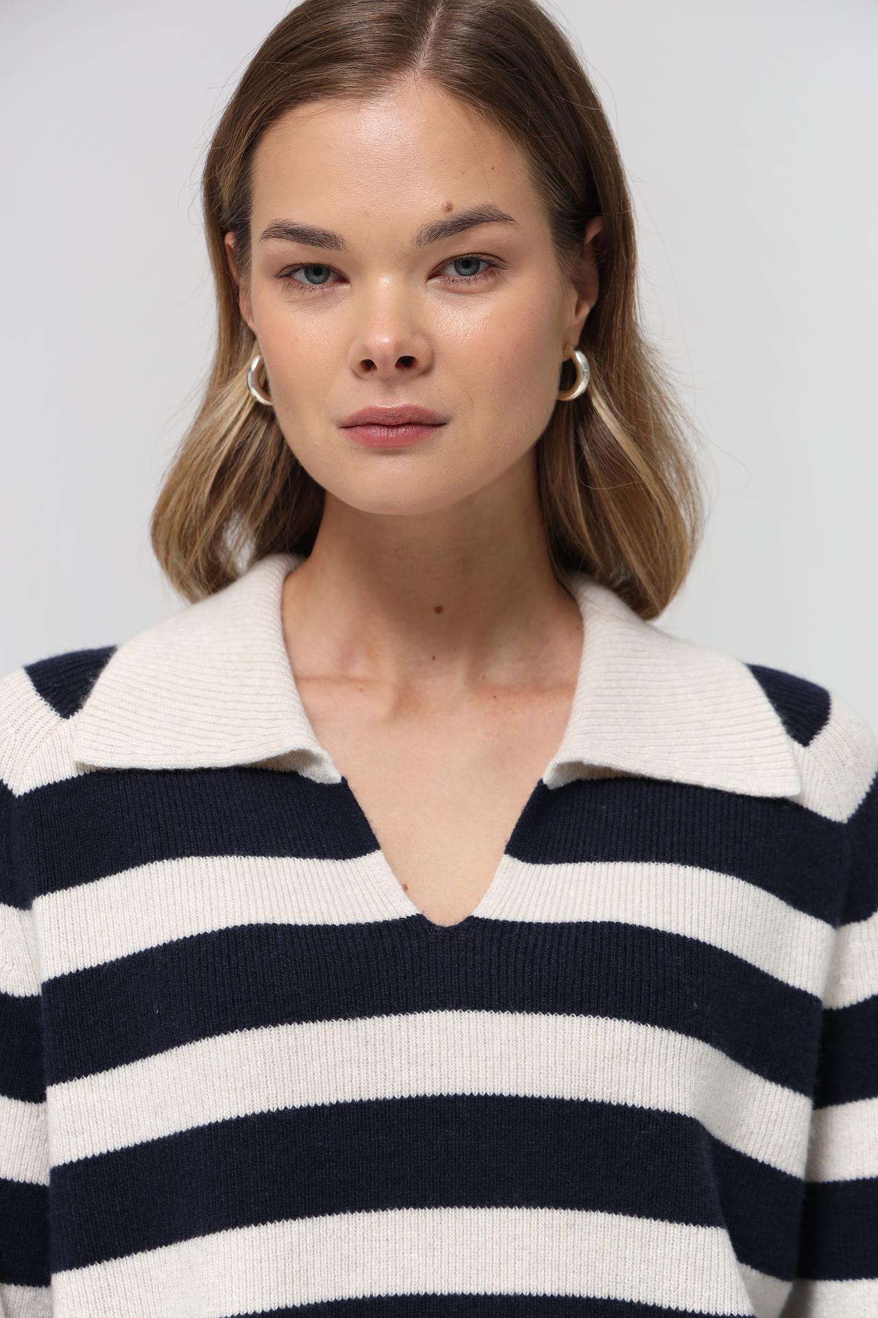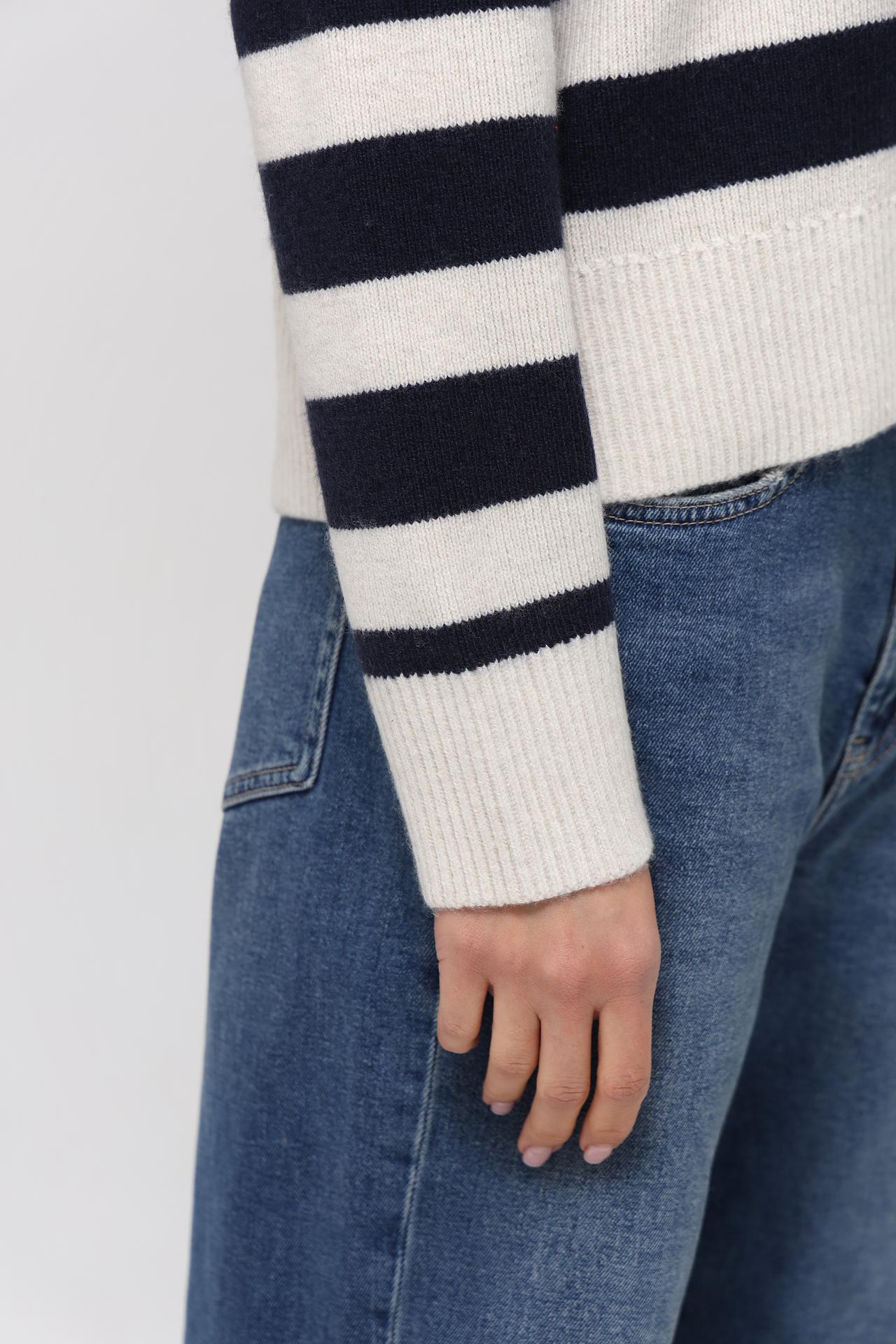 - Высококачественный материал: Сочетание шерсти, полиамида и модала делает пуловер теплым, мягким и долговечным.