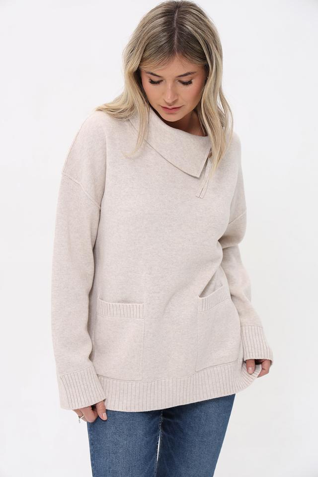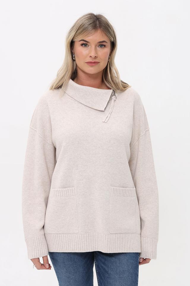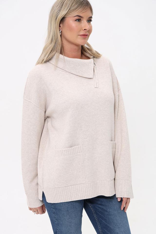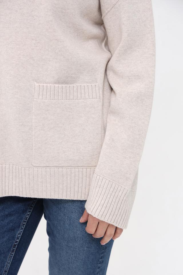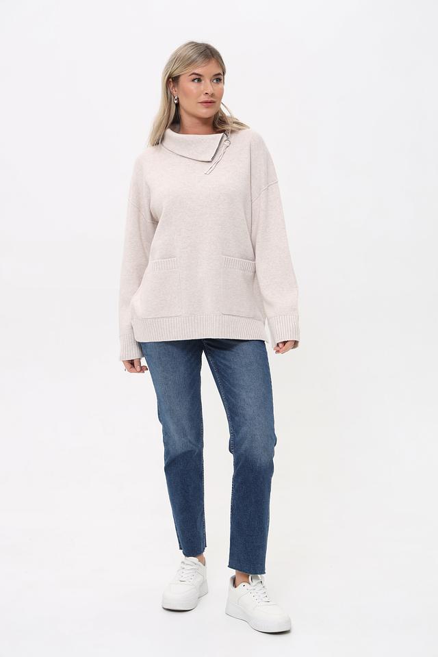 Бежевый пуловер от Oui с воротником-стойкой и небольшим вырезом. Изготовлен из мягкого трикотажа с карманами, что придает ему уютный и стильный вид. Состав: хлопок 50%, полиакрил 50%