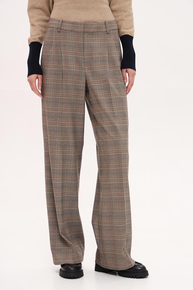 Эти стильные брюки от бренда Oui выполнены в клетчатом дизайне, сочетающем в себе оттенки коричневого, бежевого и серого. Прямой крой и высокая посадка создают элегантный силуэт, а складки добавляют изысканности.