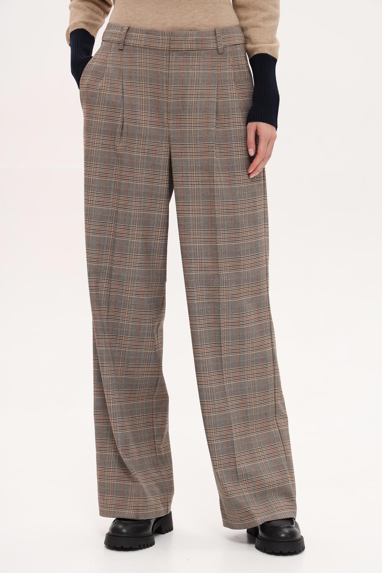 Широкие брюки Oui в классическую клетку – идеальный выбор для создания элегантного и современного образа. Модель отличается свободным кроем и комфортной посадкой, что делает ее универсальной для любого типа фигуры. Благодаря сочетанию вискозы, хлопка, полиэстера и эластана, брюки приятны к телу, хорошо держат форму и обеспечивают свободу движений. Актуальный принт "клетка" в серо-коричневых тонах добавляет образу изысканности и легко вписывается в осенне-зимний гардероб. Эти брюки станут основой множества стильных ансамблей.