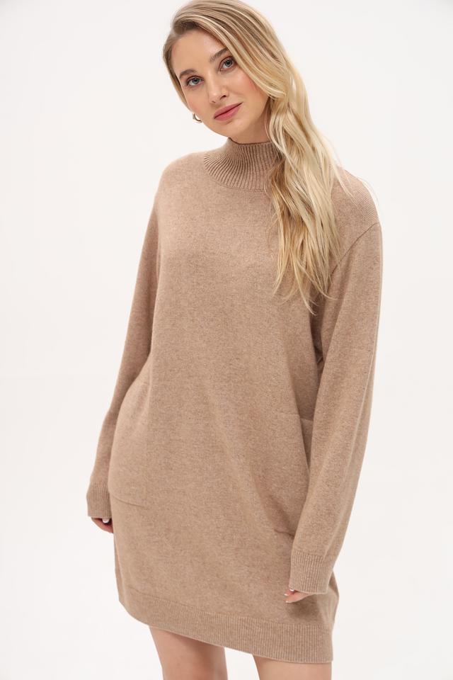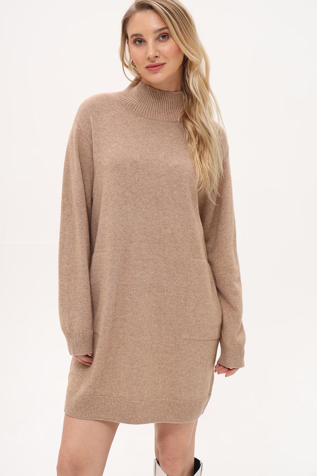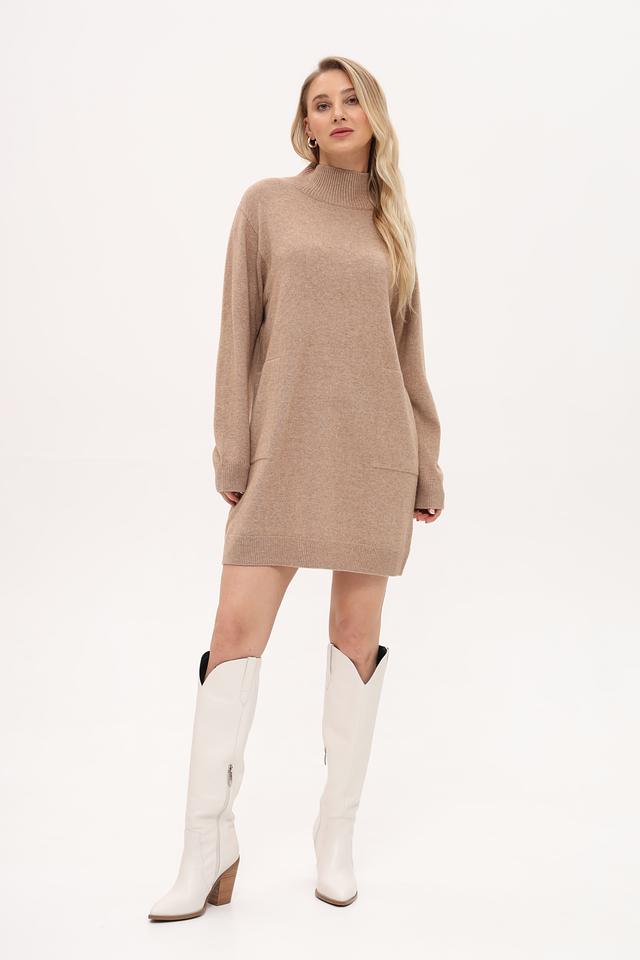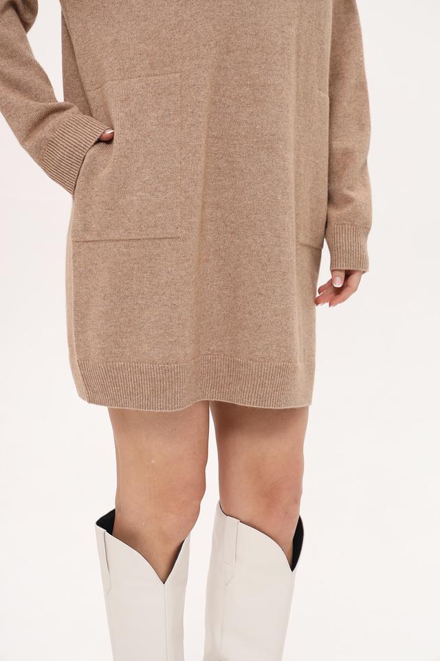 Бежевое платье от Oui выполнено из мягкого вязаного полотна с высоким горлом. Уютный силуэт и боковые карманы делают его идеальным выбором для повседневной носки. Состав включает шерсть, полиамид и модал. Состав: шерсть 50%, полиамид 30%, модал 20%