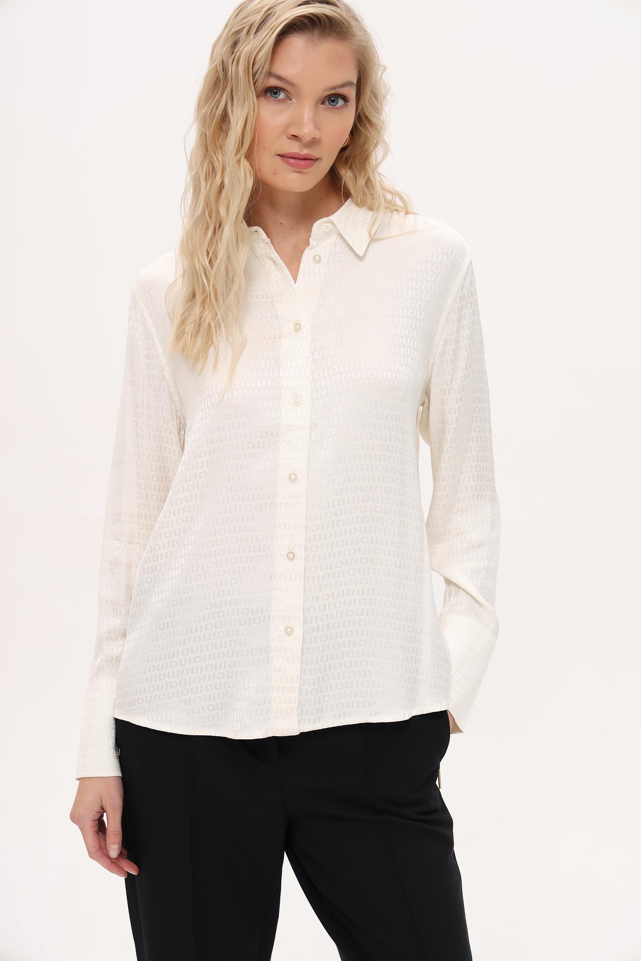 Блузка свободного кроя идеально сочетается как с классическими брюками, так и с повседневными джинсами, создавая стильный и непринужденный образ.