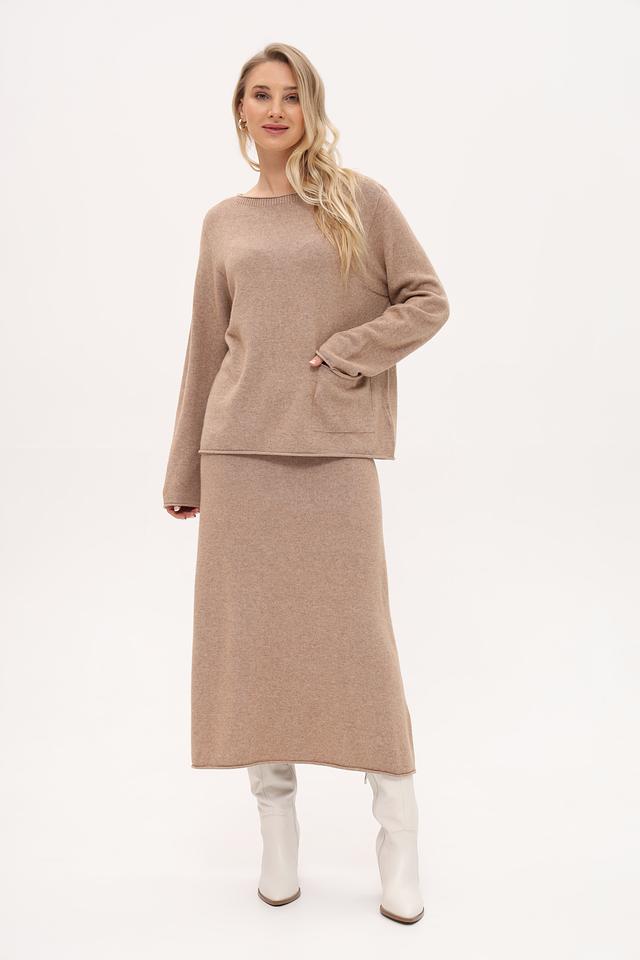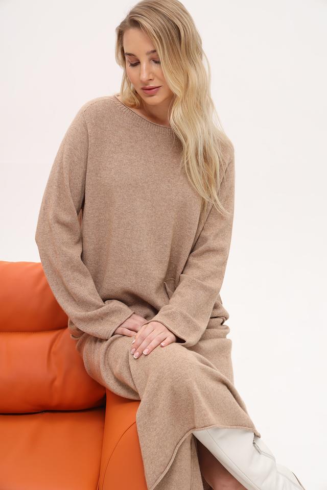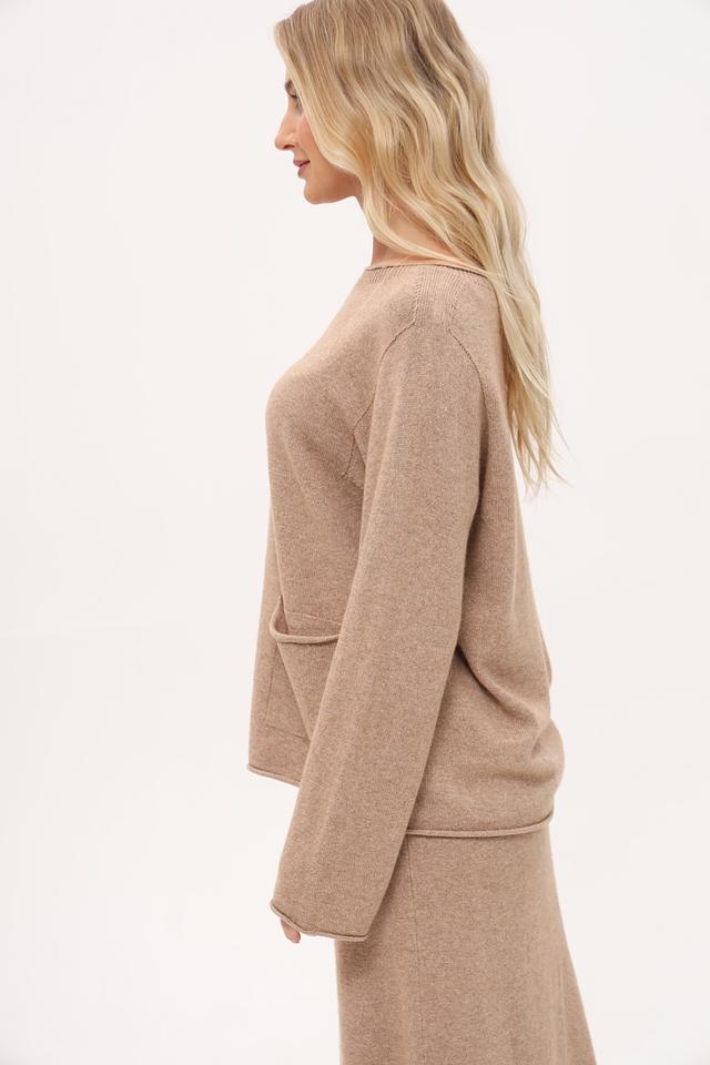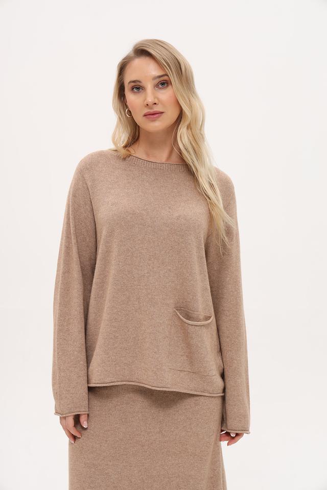 Пуловер Oui бежевый с карманом