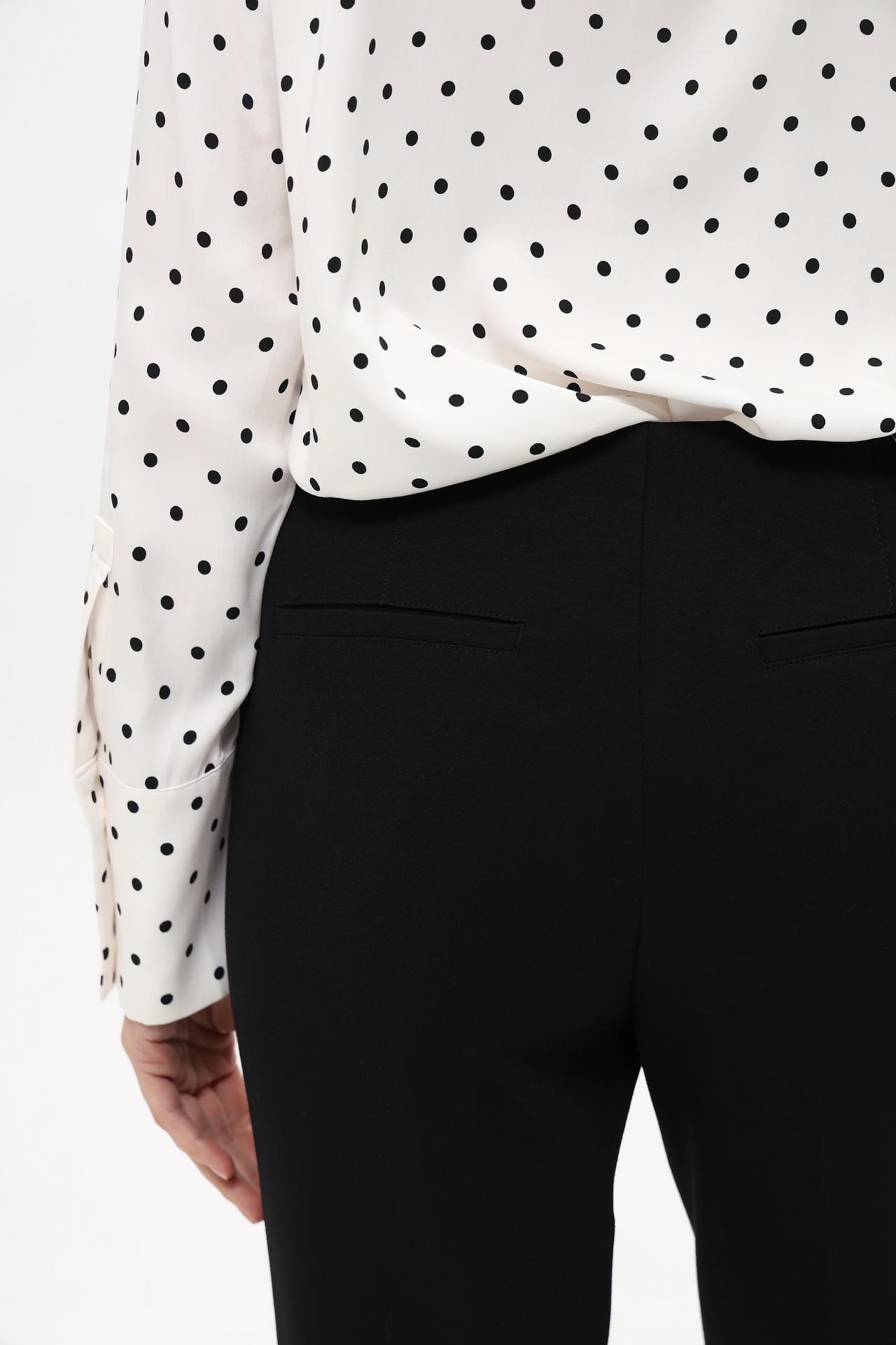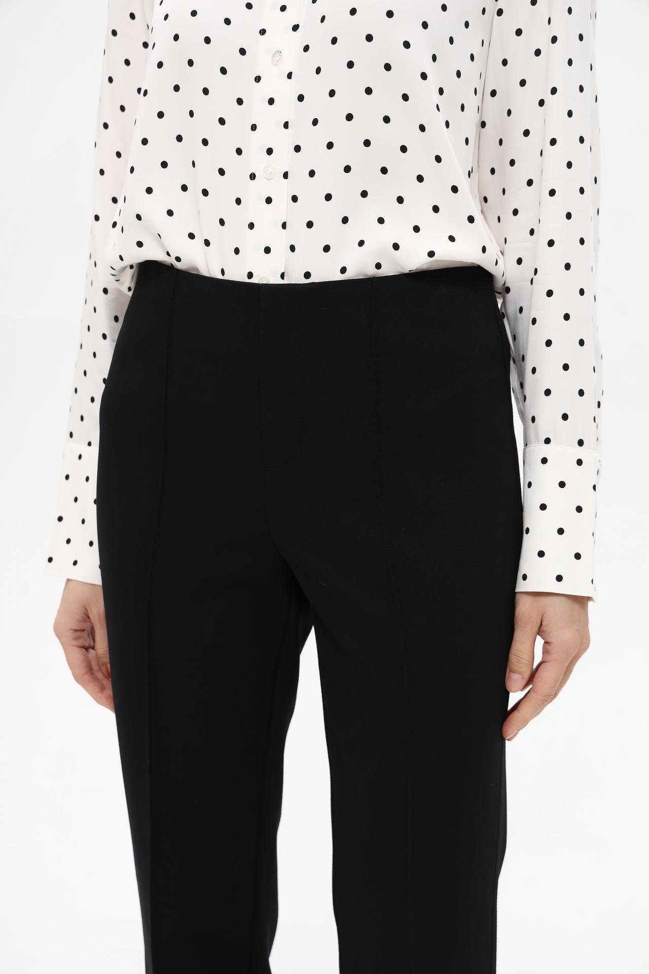 - Крой: Классический прямой крой со средней посадкой визуально удлиняет ноги и создает элегантный силуэт. Брюки смотрятся аккуратно и сдержанно, идеально для создания деловых образов.