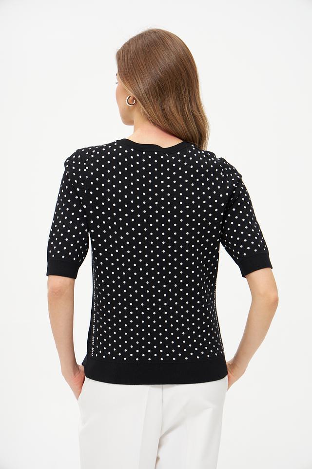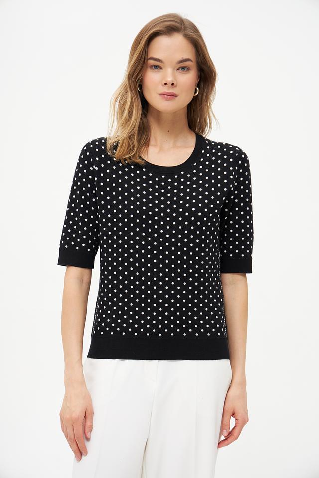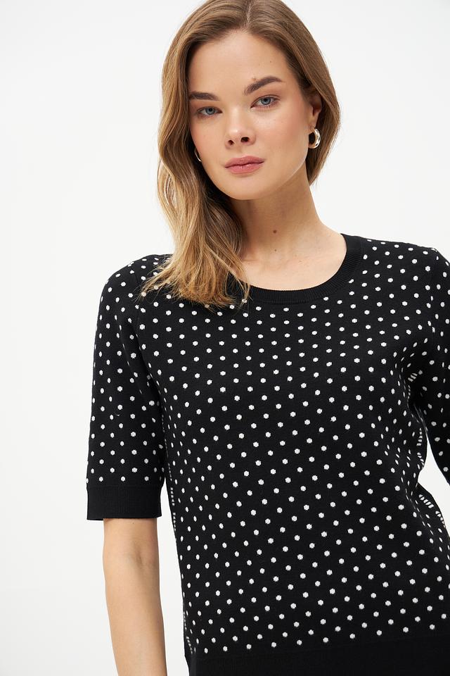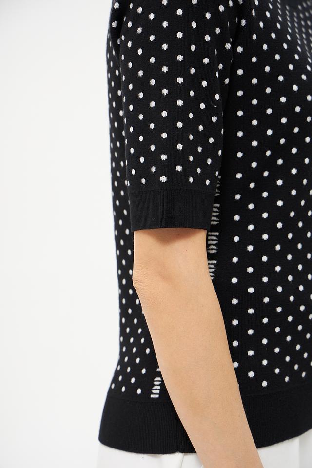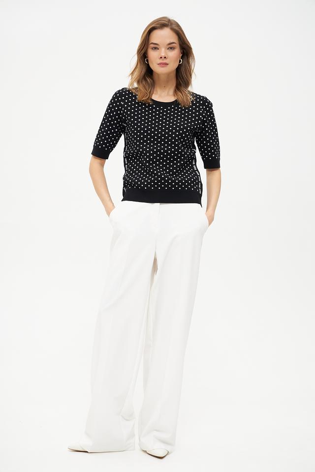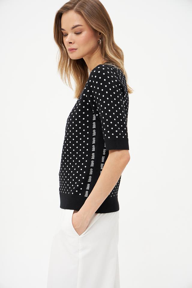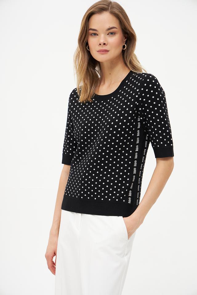 Женский пуловер Oui чёрного цвета с белым горохом. Изготовлен из мягкой вискозы и полиэстера, обеспечивающих комфорт и удобство в носке. Состав: вискоза 72%, полиэстер 28%