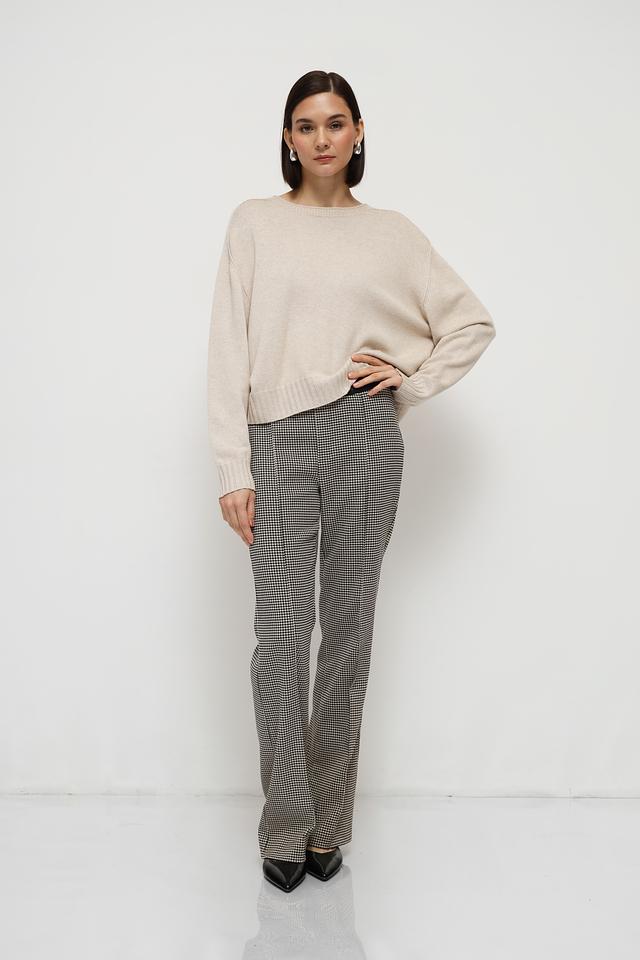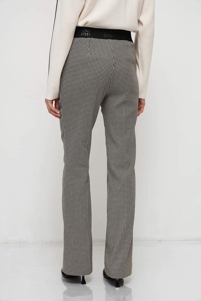 Женские брюки Oui классического кроя, выполнены в чёрно-белую клетку. Модель с эластичным поясом и широкими штанинами обеспечит комфорт и элегантный образ. Состав: полиэстер 44%, переработ.полиэстер 29%, вискоза 24%, эластан 3%