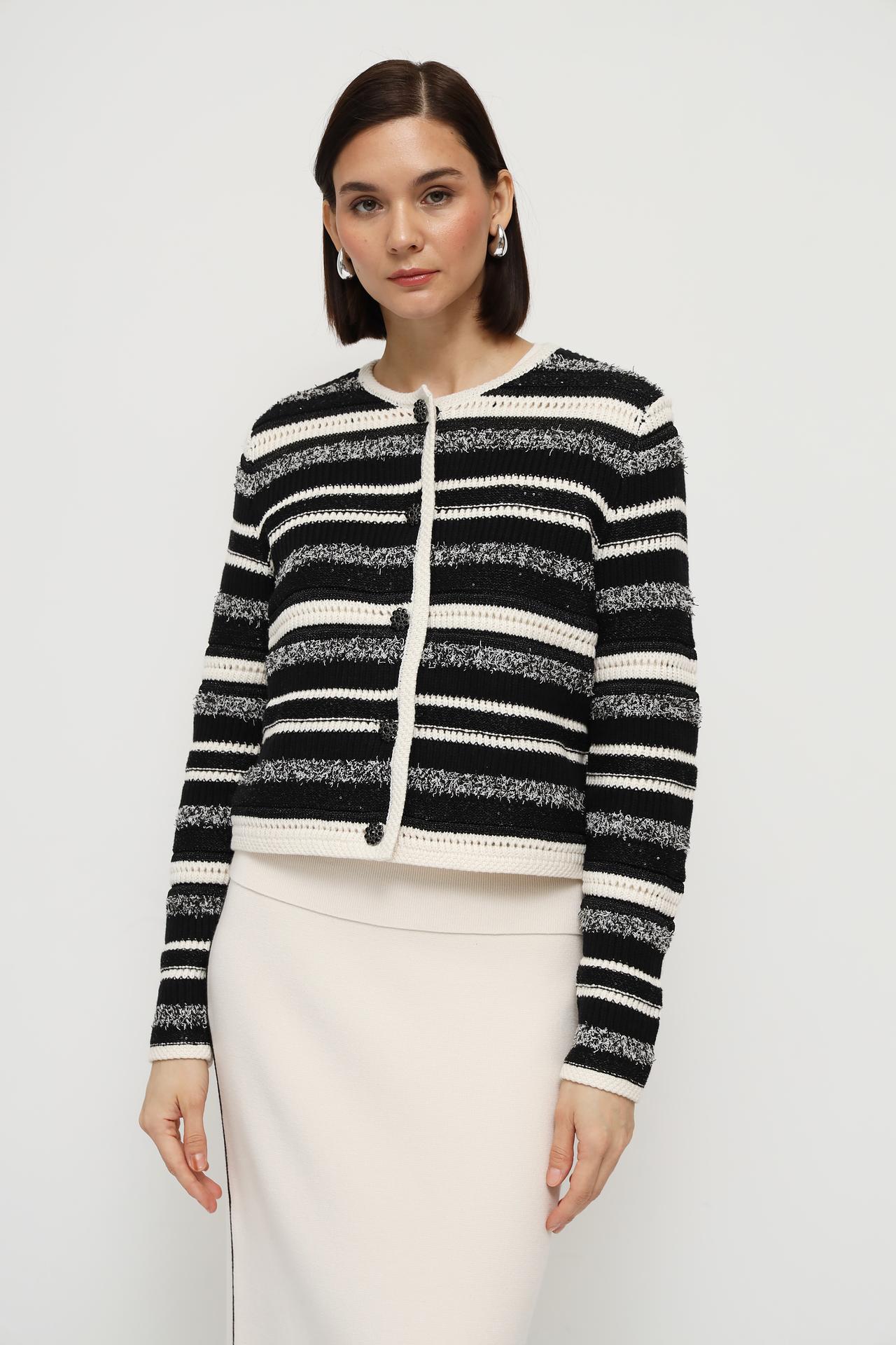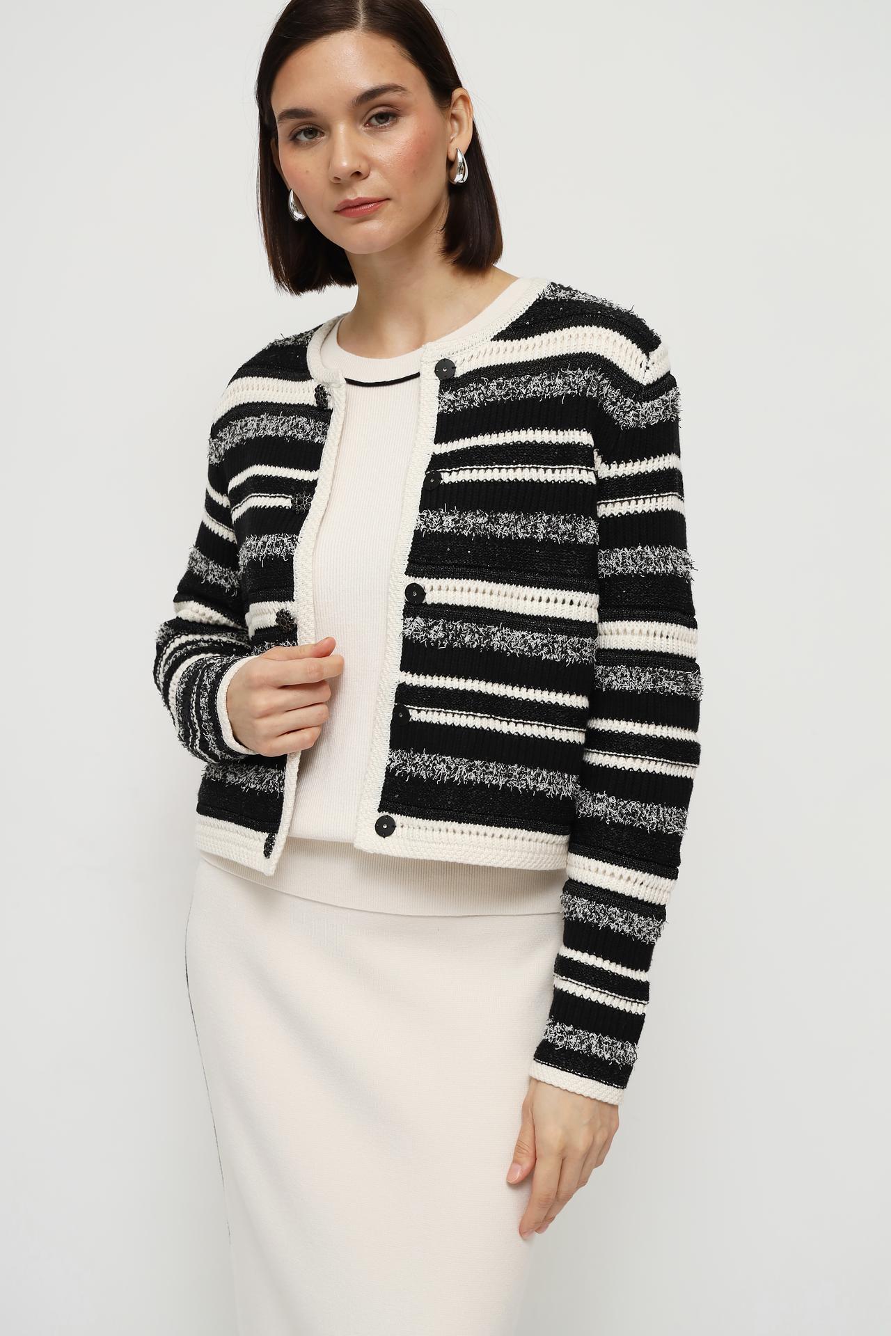 Жакет Oui в черно-белую полоску с метализированной нитью