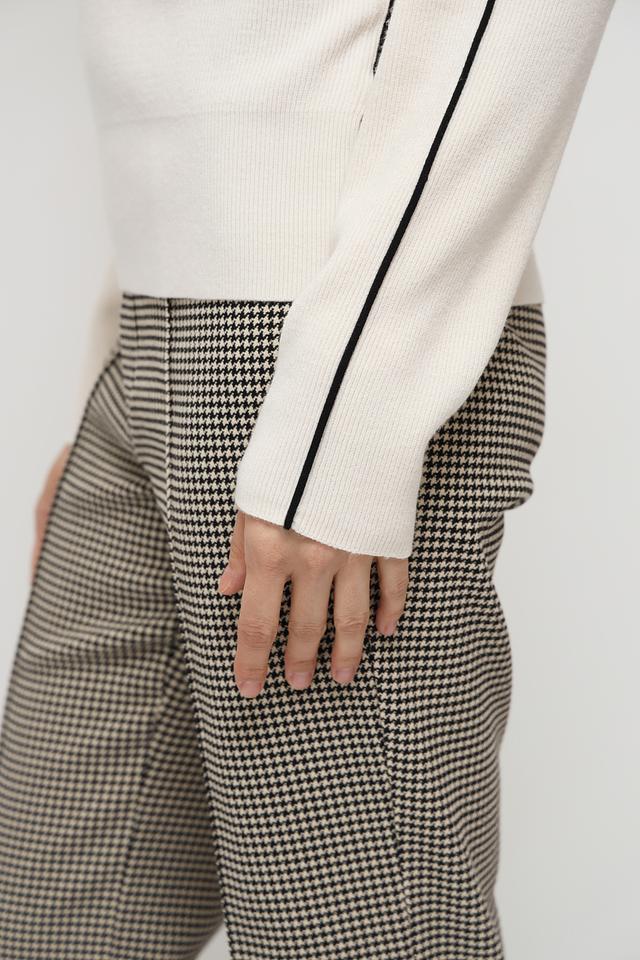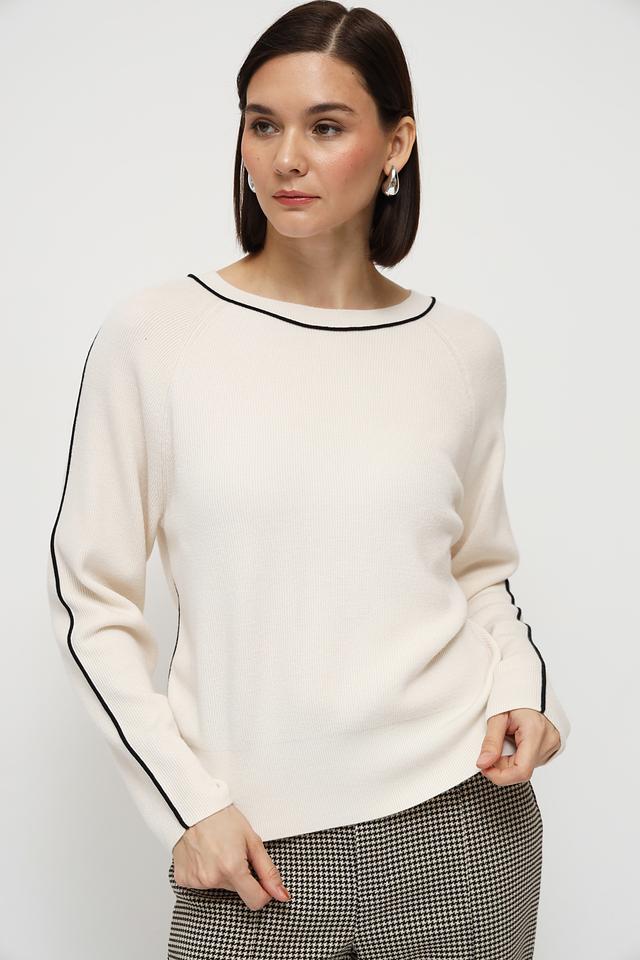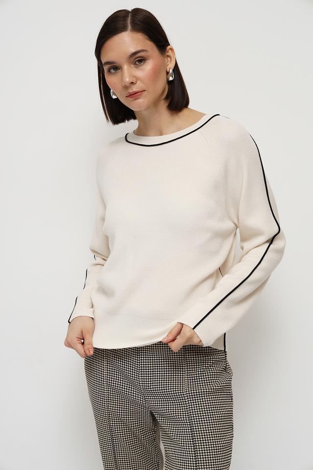 Бежевый пуловер от Oui с контрастной чёрной полоской на горловине и рукавах. Изготовлен из мягкого трикотажа, обеспечивающего комфорт и удобство в носке. Состав: вискоза 52%, полиэстер 30%, полиамид 18%