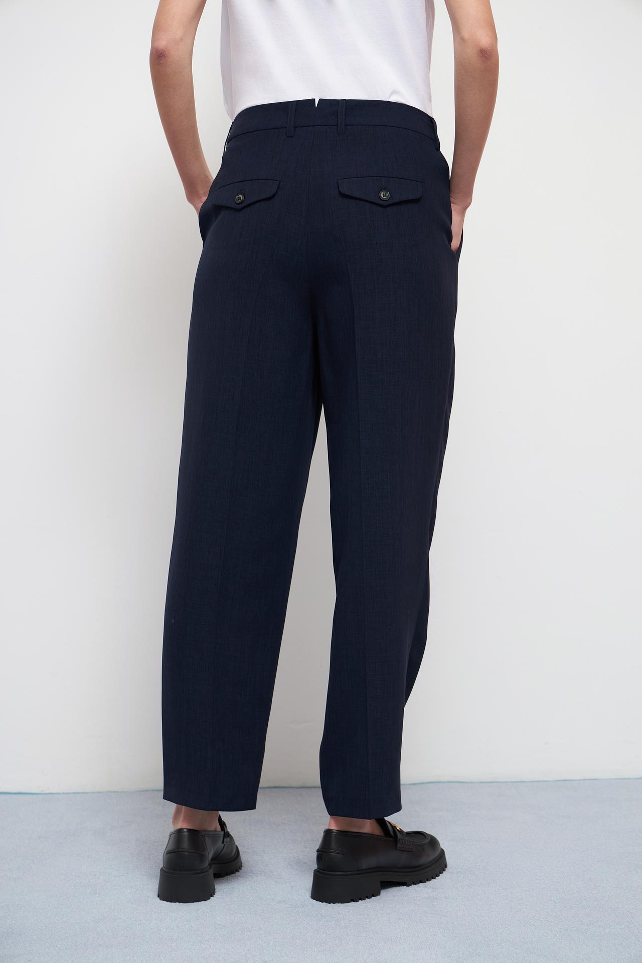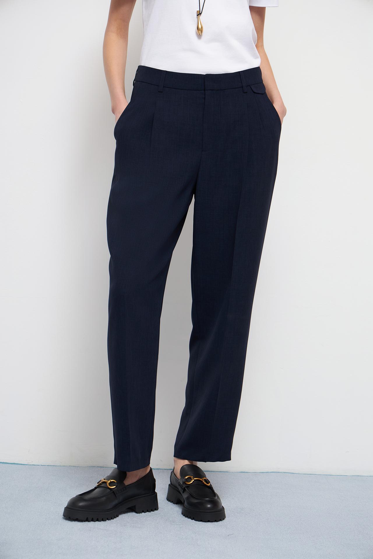 - Идеальный крой. Брюки имеют прямой крой с легким заужением к низу и высокие защипы, которые создают стильный и расслабленный силуэт, визуально удлиняя ноги.