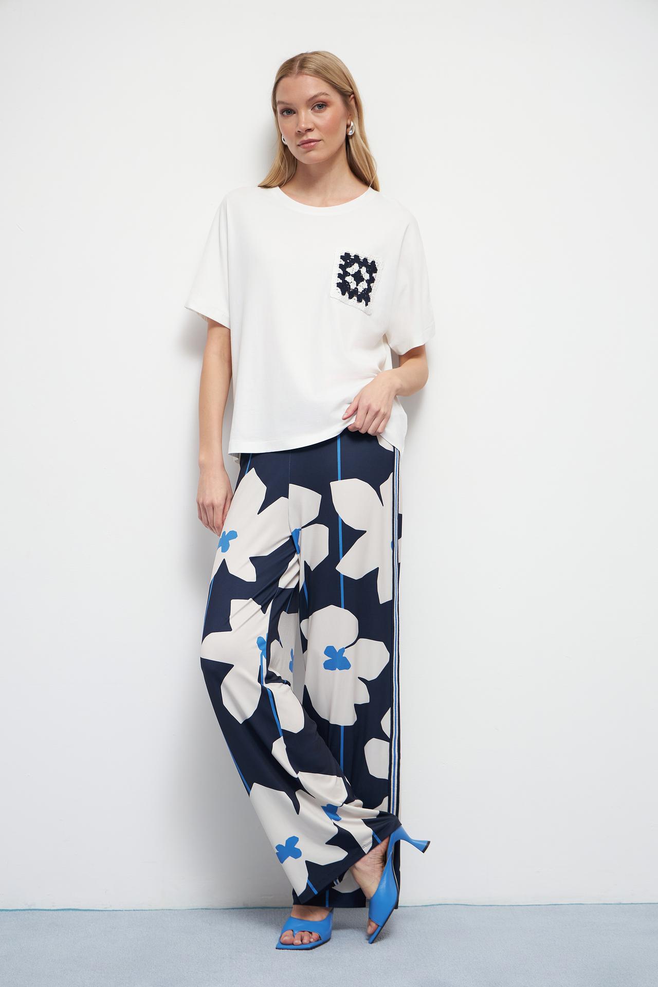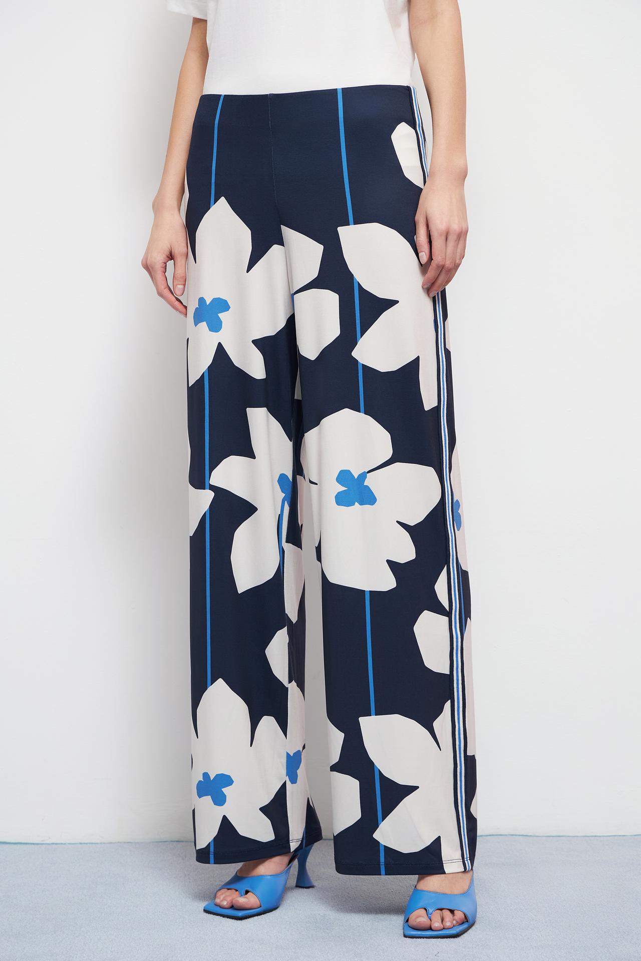Брюки Oui женские темно-синие с цветочным принтом