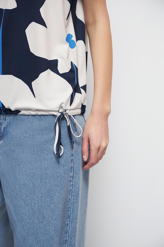 Блуза Oui синего цвета с ярким цветочным принтом – стильное и комфортное решение для создания повседневного образа. Модель выполнена из мягкой ткани с добавлением эластана, что обеспечивает удобную посадку и свободу движений. Блуза имеет короткие рукава и завязки по бокам. Состав: полиэстер 92%, эластан 8%