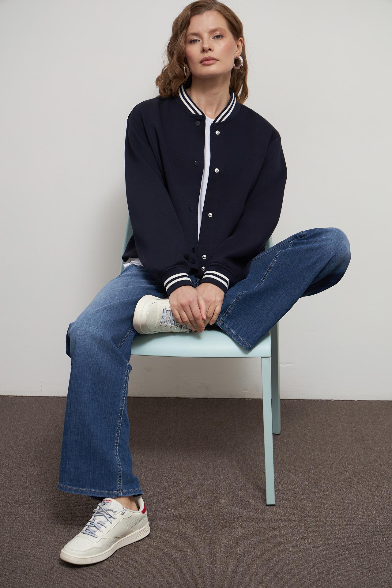 Жакет Oui бомбер темно-синий с полосками
