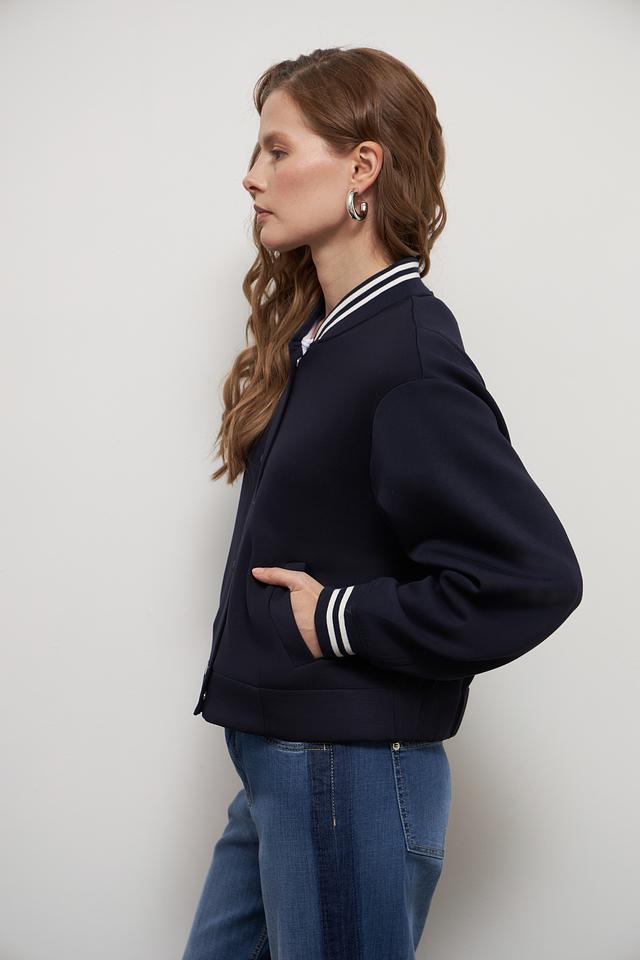 Жакет Oui – это стильный темно-синий бомбер с белыми полосами на манжетах и воротнике. Классический крой и качественные материалы делают этот жакет отличным выбором для создания повседневных образов. Состав: полиэстер 49%, вискоза 46%, эластан 5%