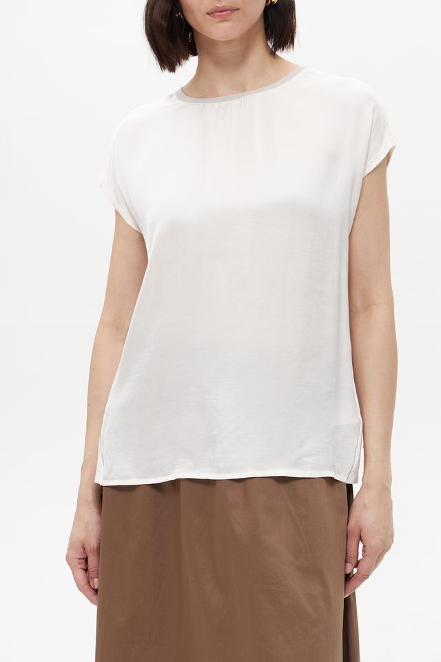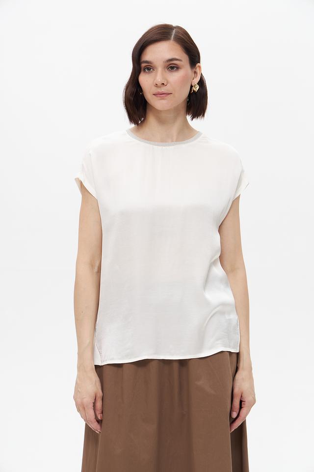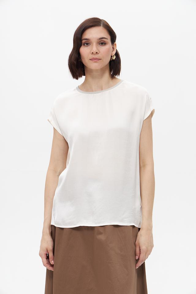 Округлый вырез горловины и короткие рукава делают эту блузу универсальной для различных стилей и сезонов. Она отлично сочетается с юбками, брюками и джинсами, позволяя создавать разнообразные комплекты.