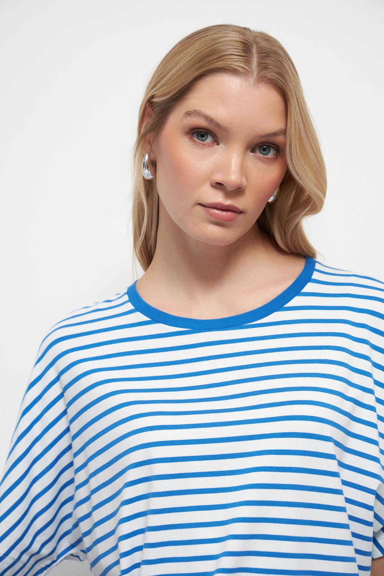 - Многообразие образов: Футболка в полоску легко комбинируется с джинсами, шортами, брюками или юбками, позволяя создавать свежие и актуальные комплекты для любого случая.