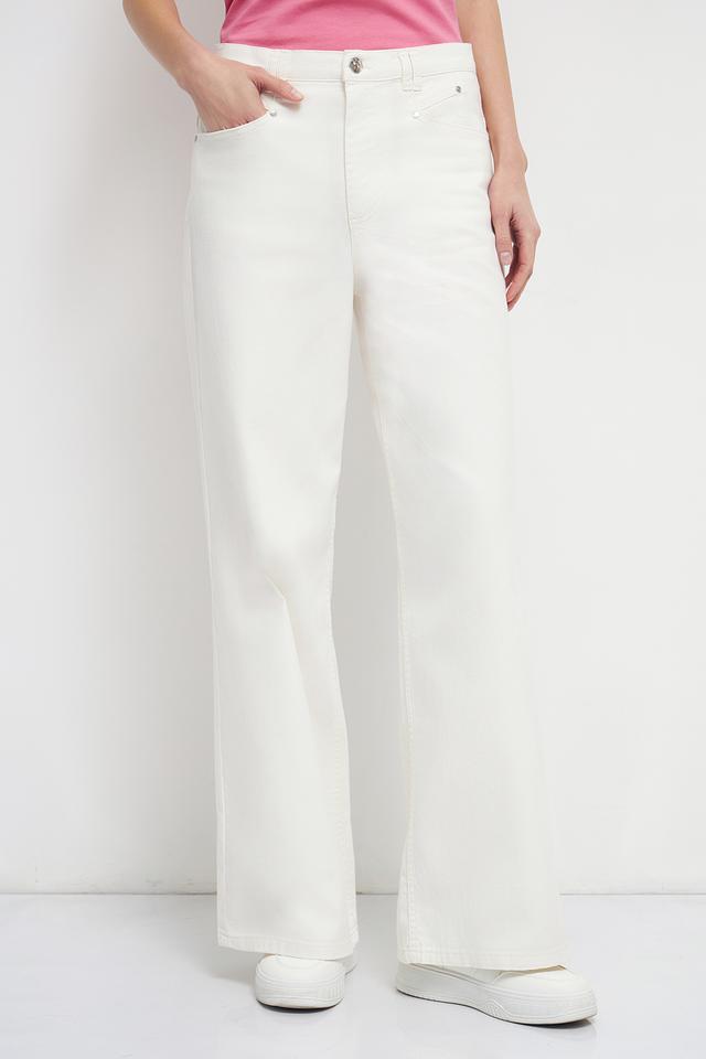 Белые джинсы широкого кроя от Oui из хлопка с добавлением эластана. Модель отличается свободным силуэтом и классическим дизайном. Состав: хлопок 99%, эластан 1%