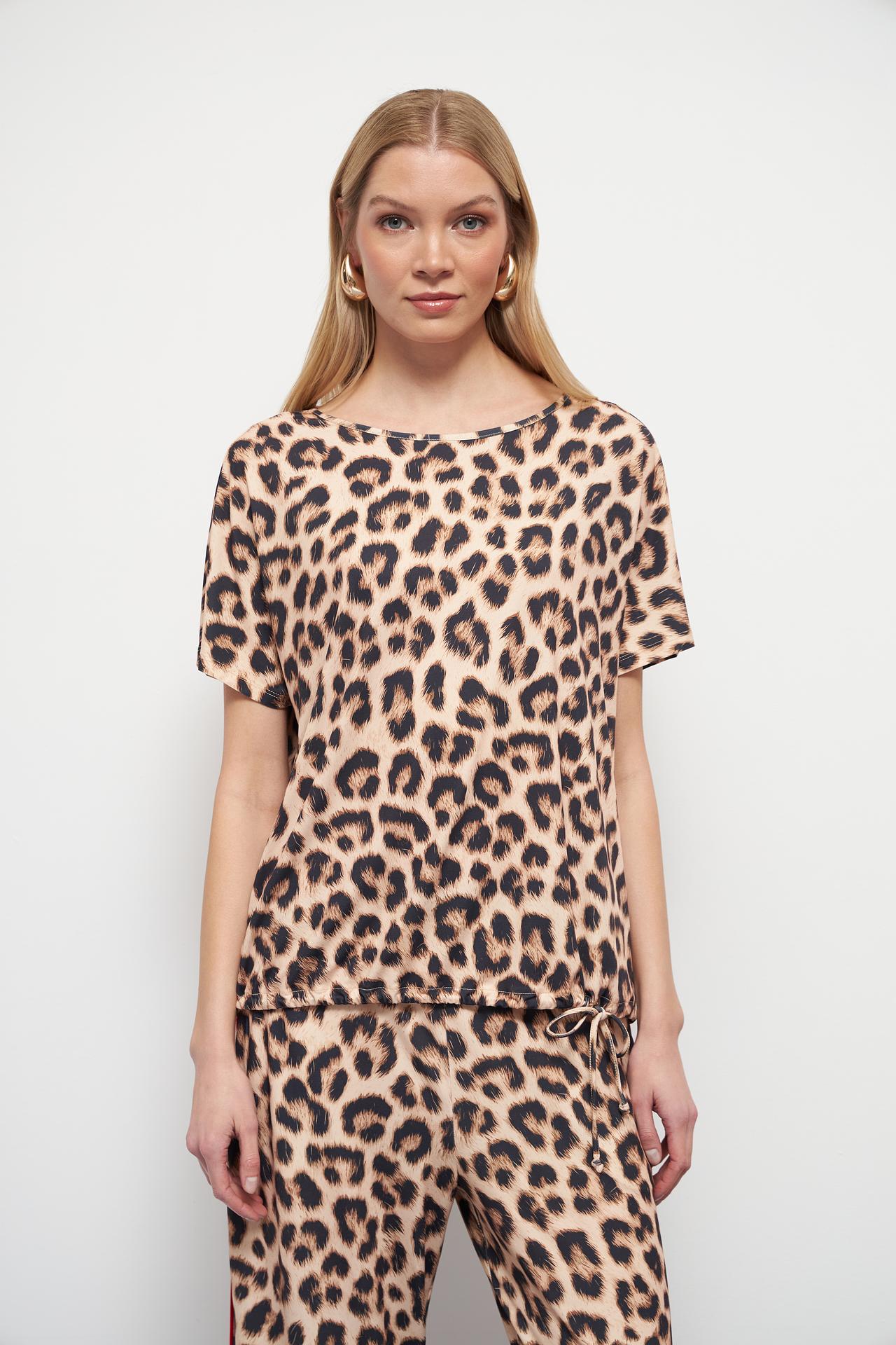 - Стильный леопардовый принт: Актуальный леопардовый принт придает модели смелый и изысканный вид, позволяя выделиться и подчеркнуть индивидуальность. Этот модный принт легко интегрируется в различные стили, от кэжуал до более нарядных образов.