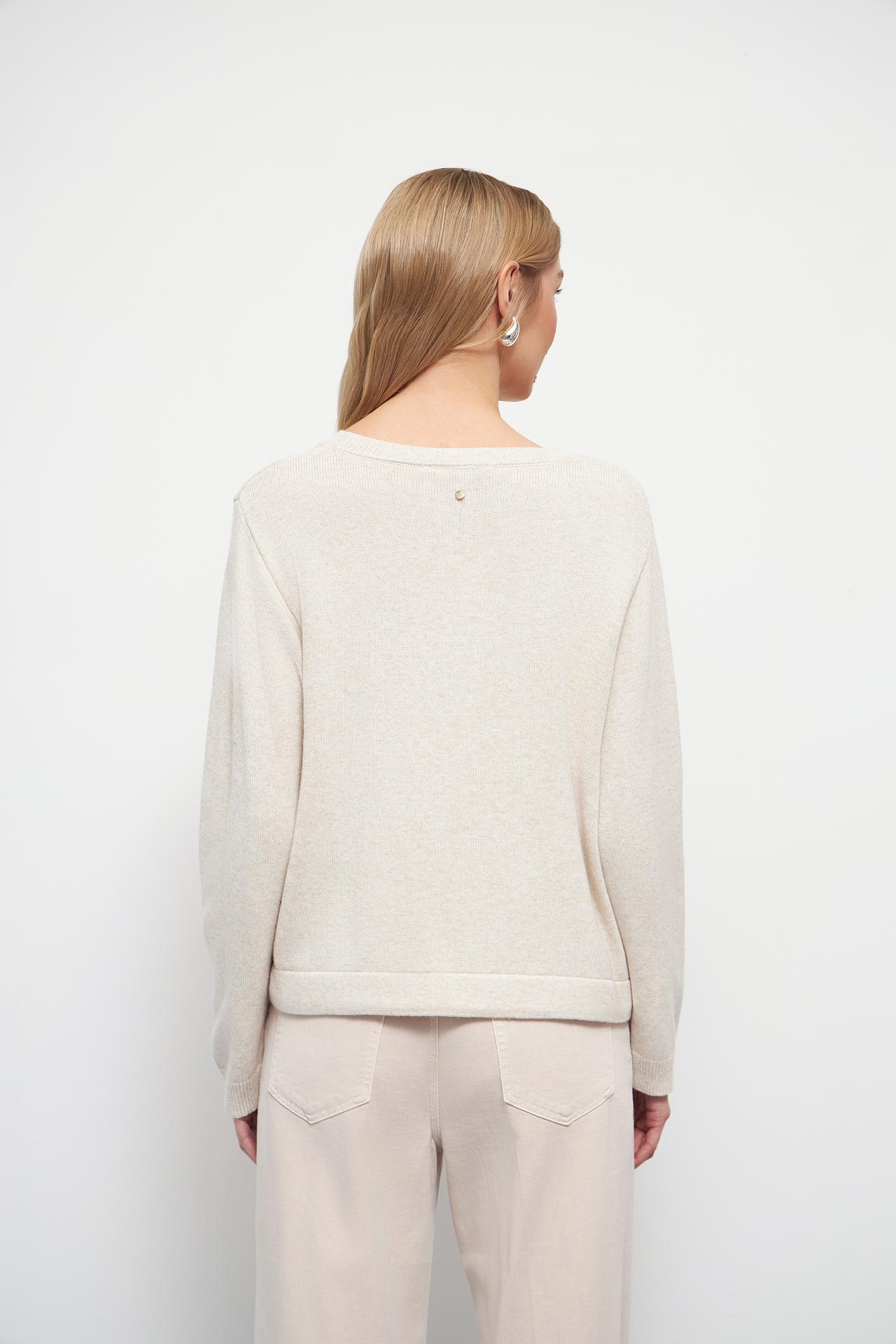 - Универсальность: Бежевый оттенок и лаконичный дизайн делают этот пуловер легко сочетаемым с различными элементами гардероба – от джинсов до классических брюк, идеально подходит для создания базового гардероба.