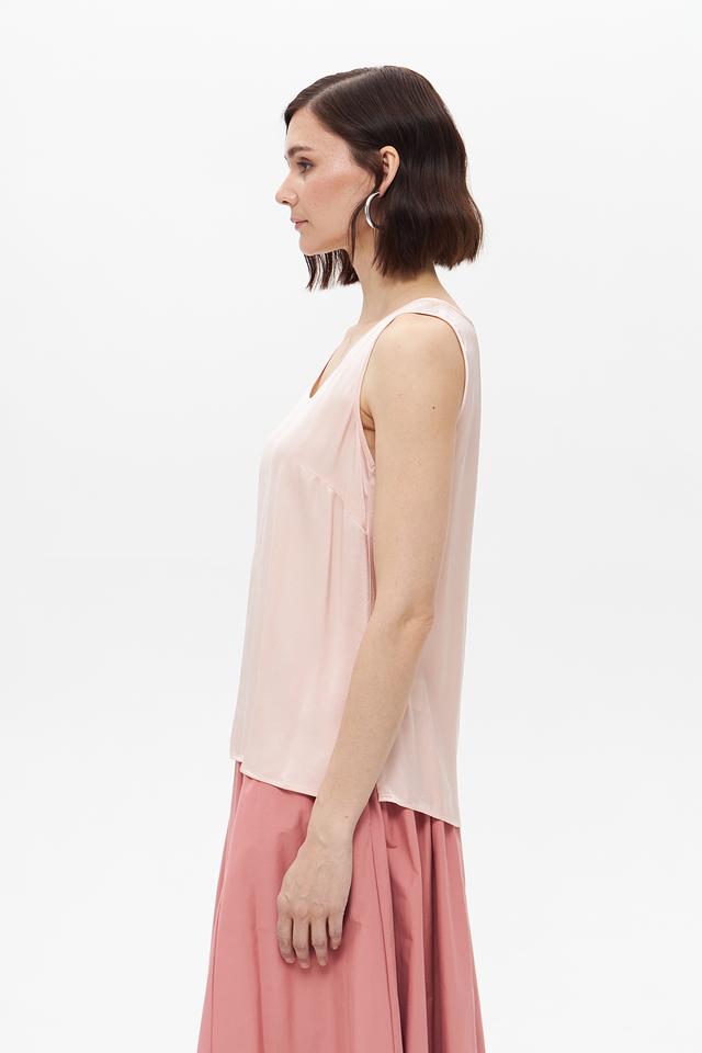 Нежный пудровый оттенок делает этот топ особенно женственным и универсальным. Он подойдет для создания как повседневных, так и более нарядных образов. Вискоза обеспечивает комфорт в жаркую погоду, позволяя коже дышать.