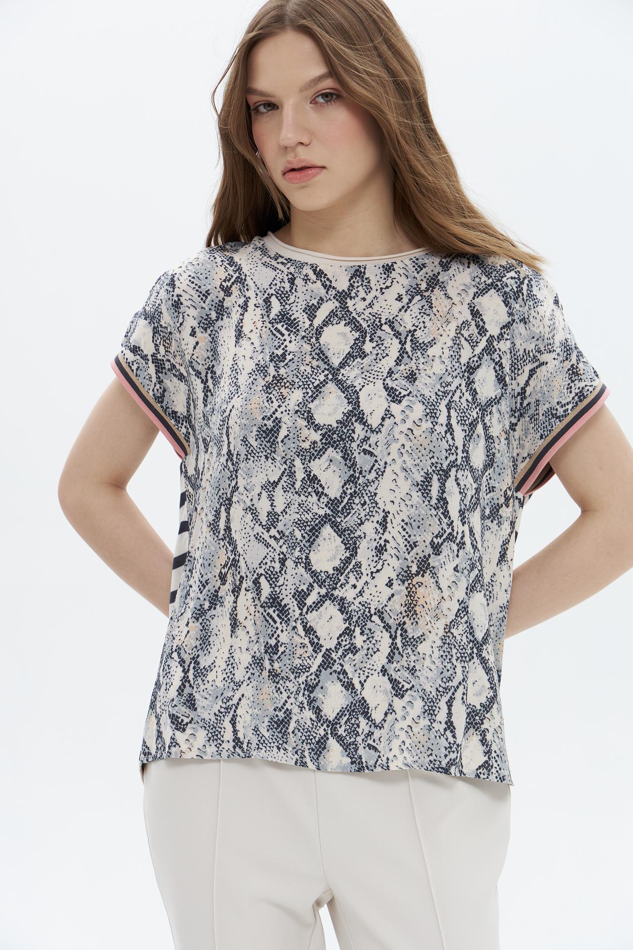 Изысканная блуза от Oui с оригинальным принтом «питон» в верхней части и полосатым дизайном в нижней. Изготовленная из 100% вискозы, она обеспечивает легкость и комфорт в носке. Эта блуза станет прекрасным дополнением вашего гардероба, добавив нотку элегантности и современности в ваш образ.