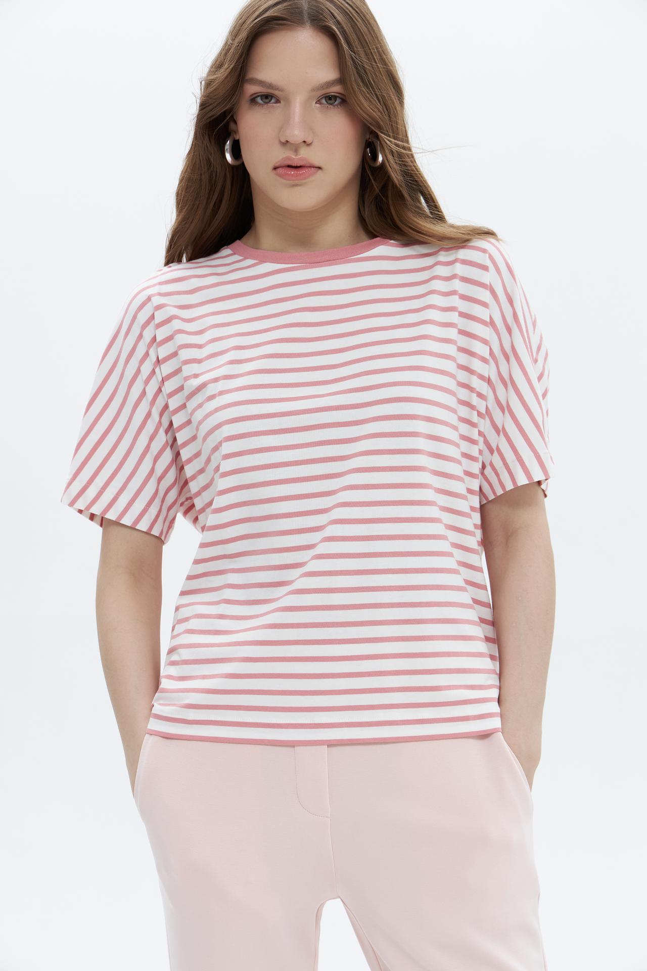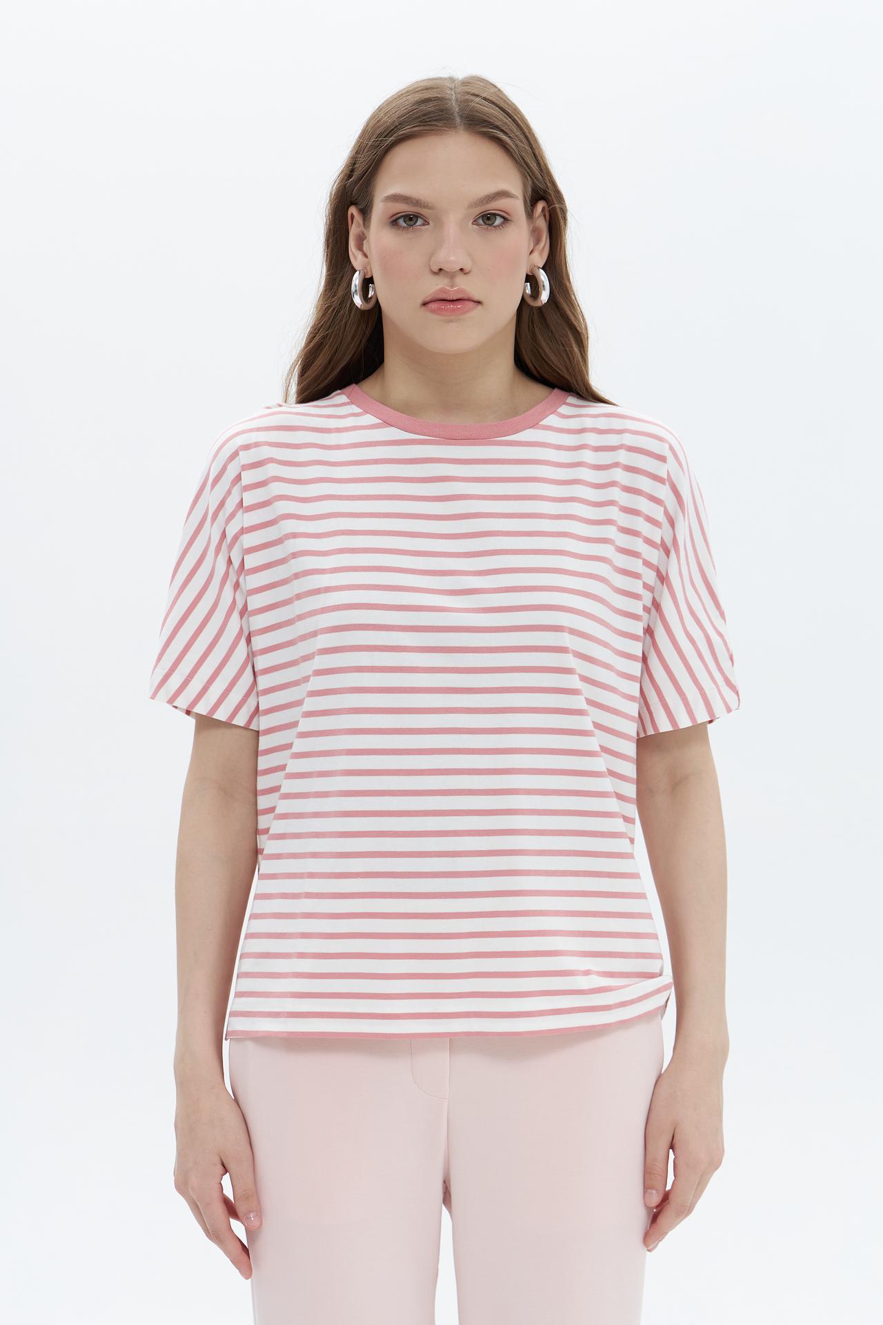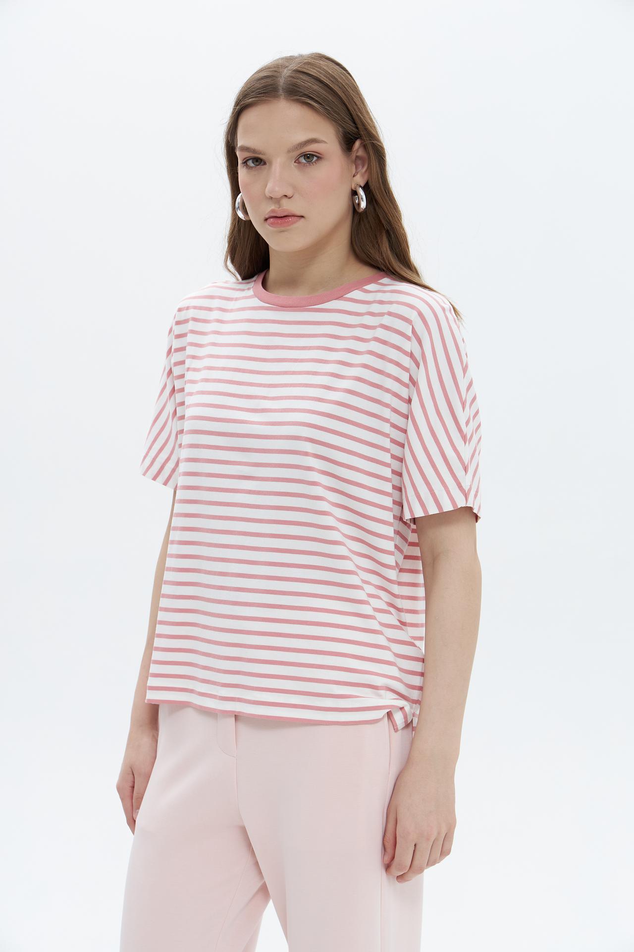 Футболка Oui в полоску розовая женская