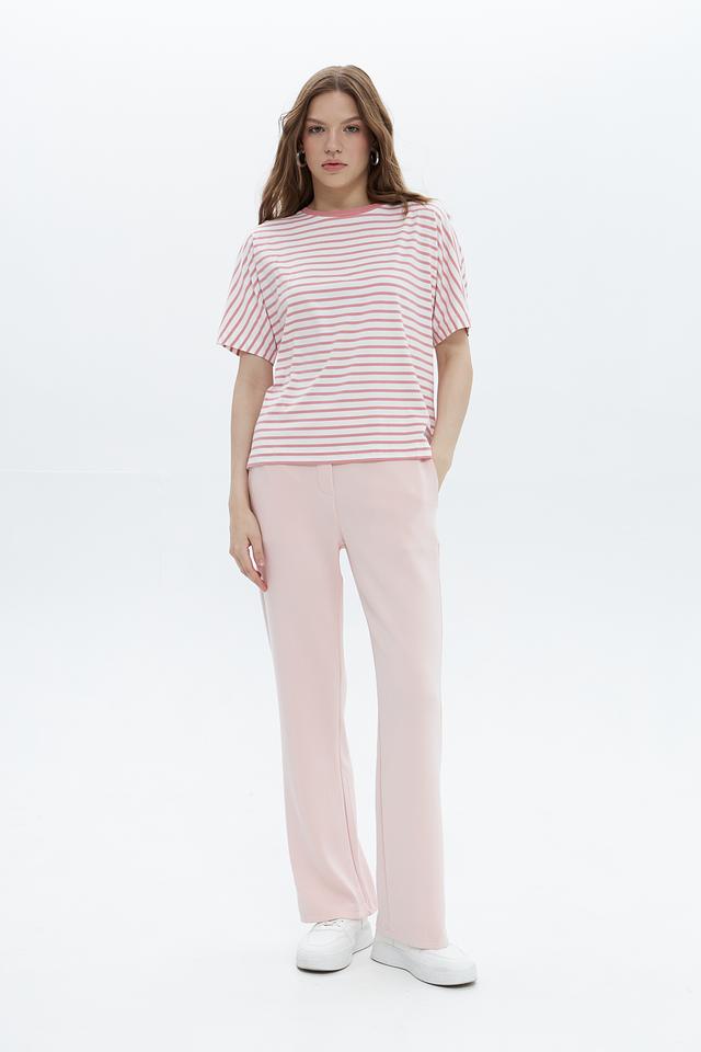 Эта стильная футболка от бренда Oui станет отличным дополнением к вашему гардеробу. Она выполнена в нежном розовом цвете с классическим полосатым рисунком.