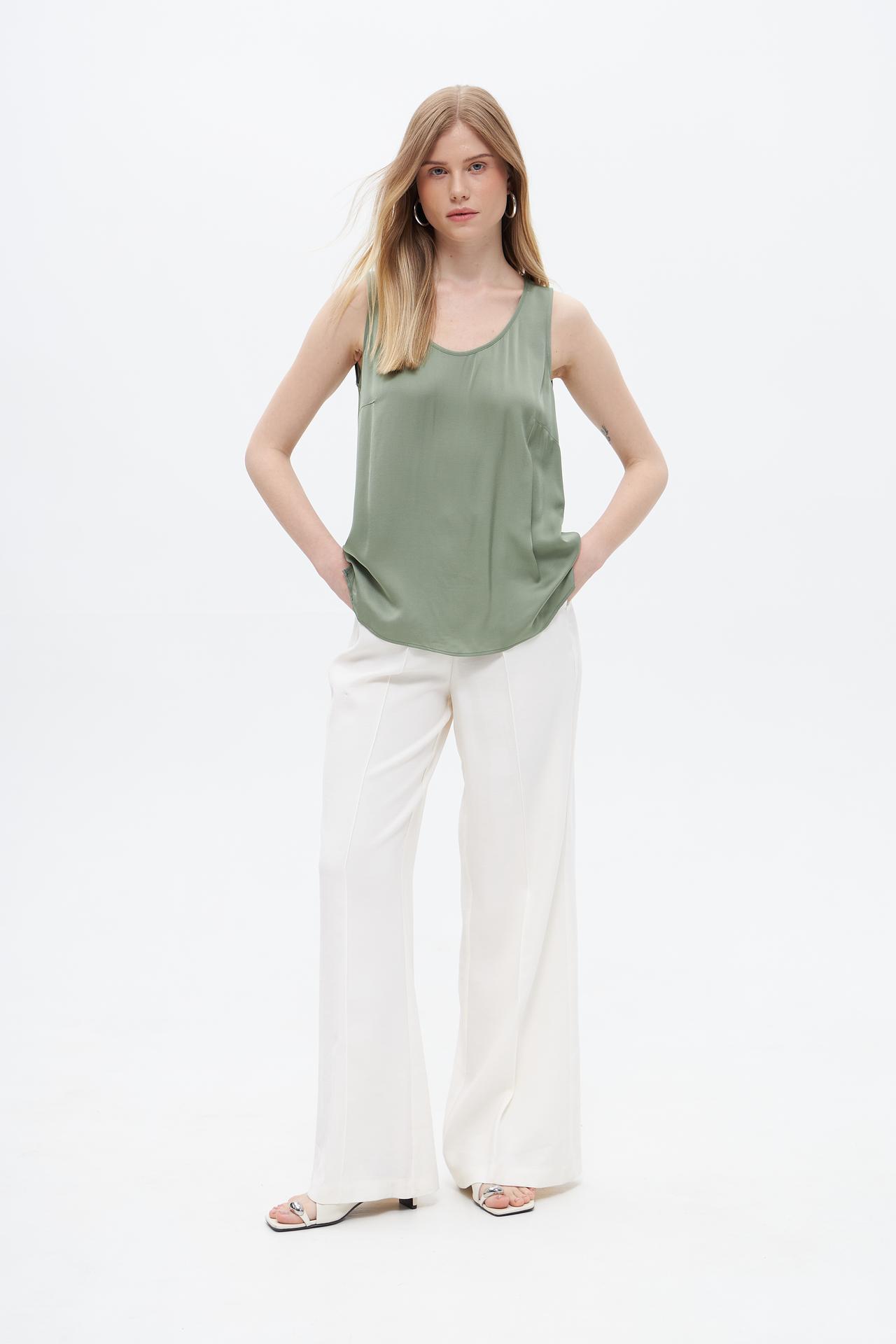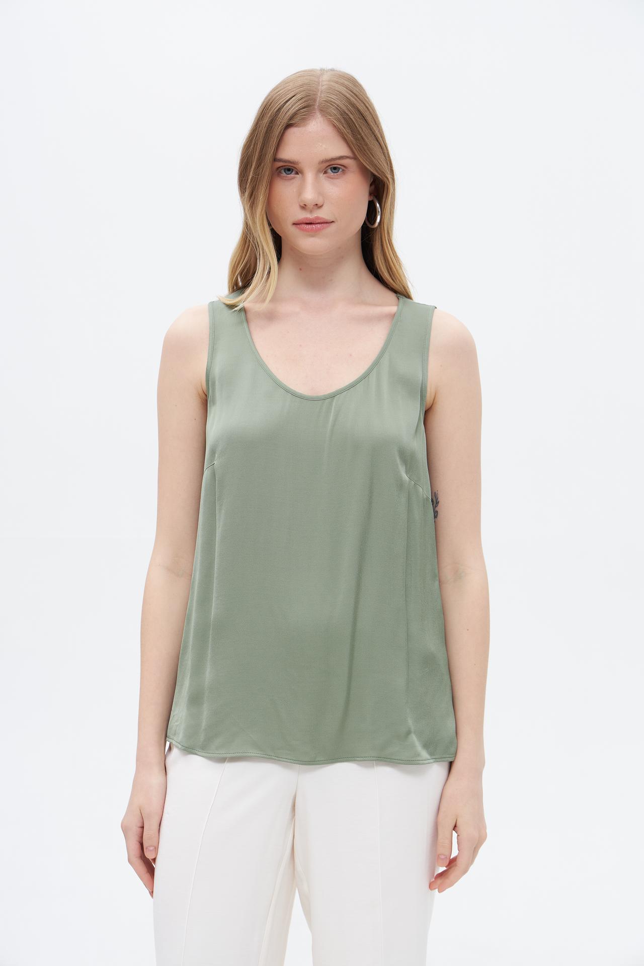 Топ Oui оливковый из вискозы без рукавов
