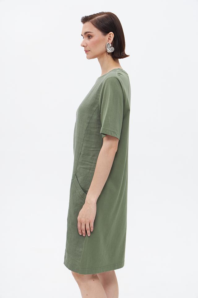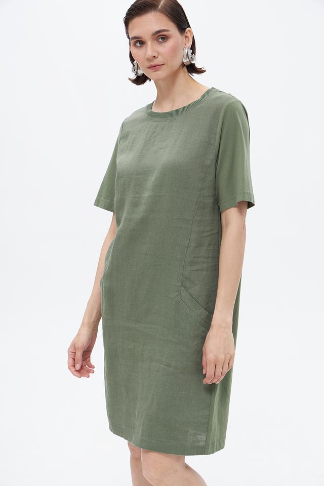 Льняное платье Oui оливкового цвета – это комфорт и стиль в одном изделии. Платье прямого кроя из 100% льна идеально подходит для летнего гардероба. Состав: лен 100%