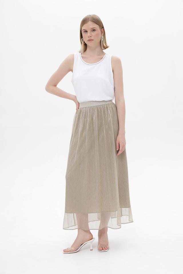 Благодаря своему дизайну, эта юбка идеально подходит для создания как вечерних, так и повседневных образов. Она прекрасно сочетается с блузками, топами и жакетами, позволяя создавать разнообразные стильные комплекты. Золотистый оттенок юбки добавит вашему образу изысканности и гламура.