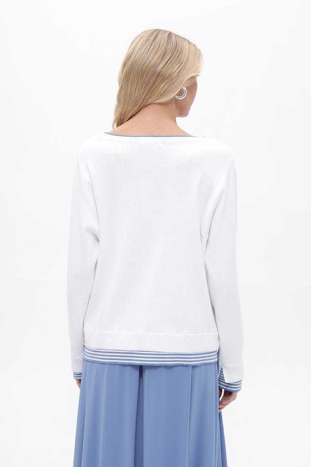 Белый пуловер от Oui из 100% хлопка с контрастной полоской на манжетах и подоле. Удобный крой и деликатный декор делают этот пуловер отличным выбором для повседневного гардероба. Состав: хлопок 100%