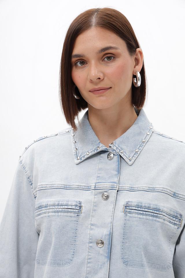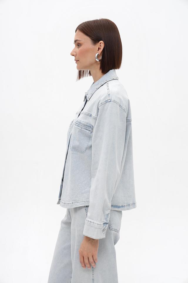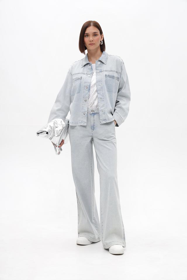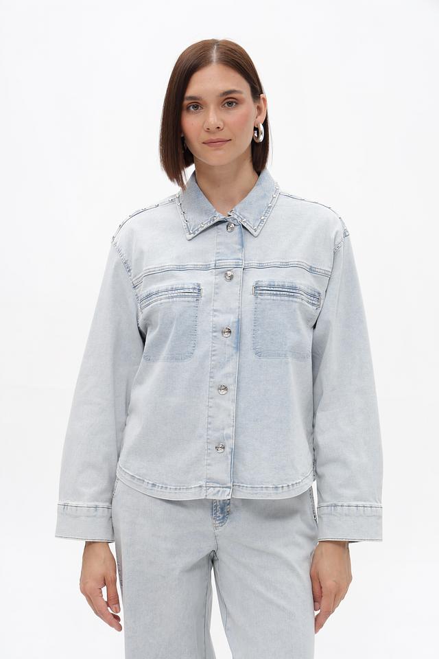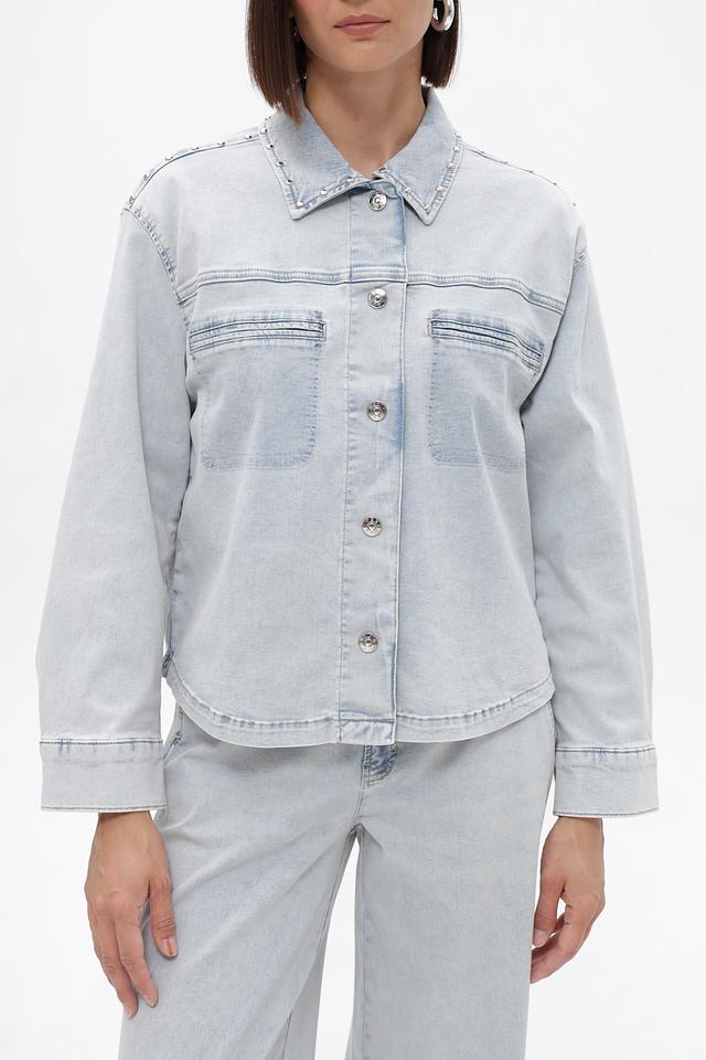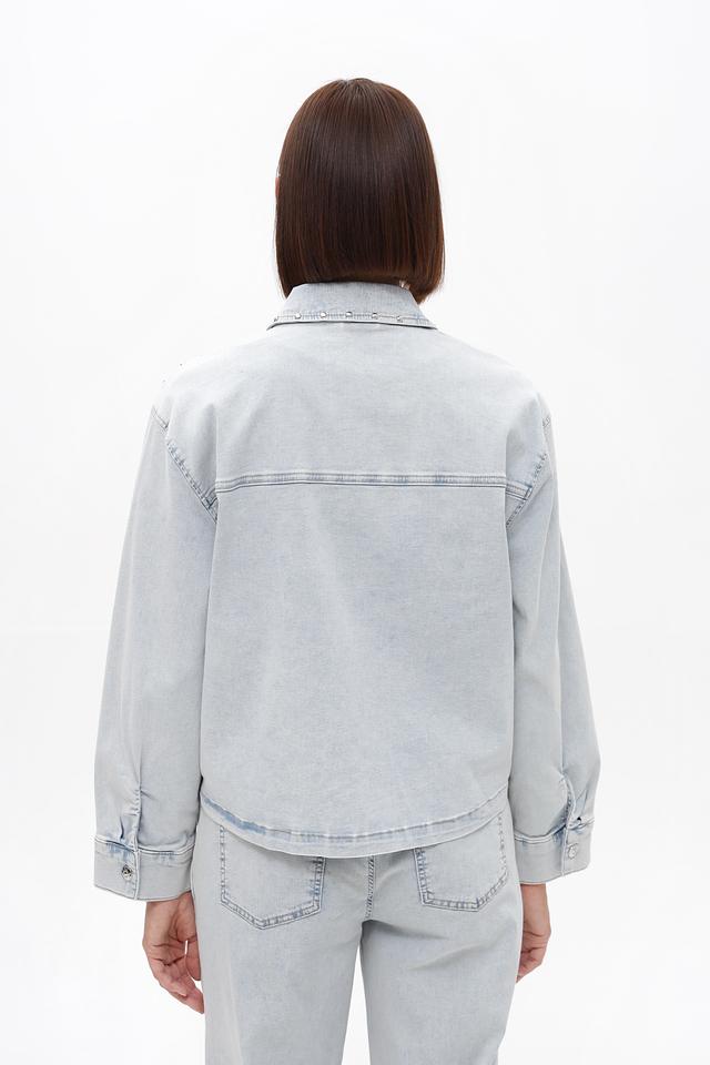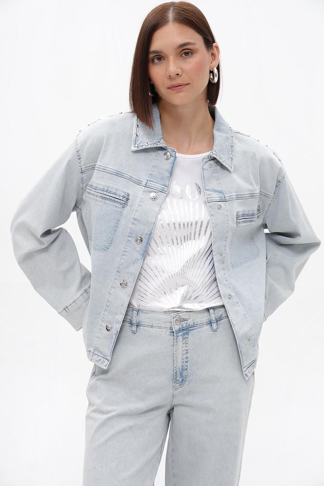 Светло-голубой джинсовый жакет от Oui с объёмным кроем. Изготовлен из смеси хлопка с добавлением модала и полиэстера, обеспечивающих комфорт и износостойкость. Состав: хлопок 75%, модал 12%, полиэстер 9%, эластан 4%