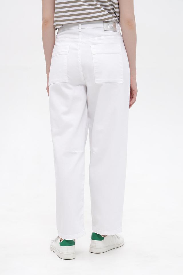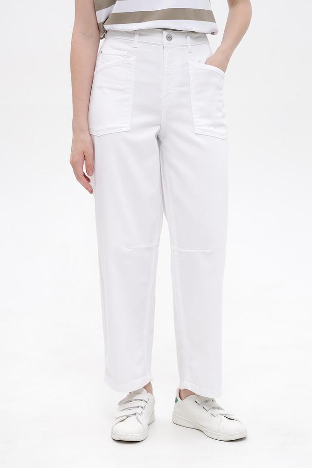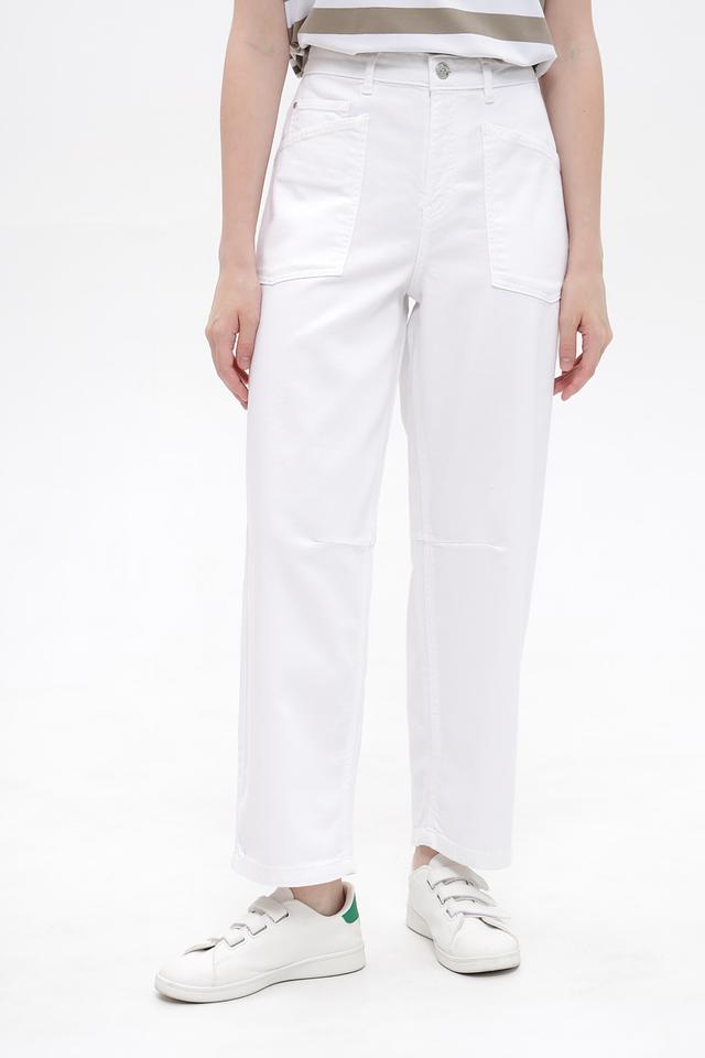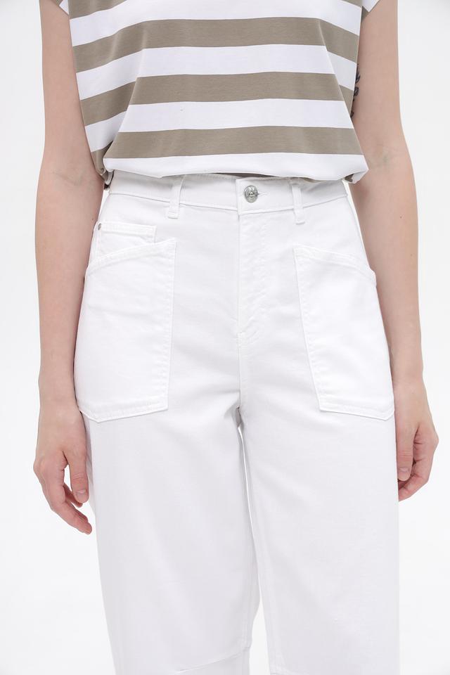 Белые джинсы карго от Oui из хлопка с добавлением эластана. Модель имеет свободный крой, пояс на пуговицы и функциональные накладные карманы. Идеальный выбор для создания повседневных образов. Состав: хлопок 98%, эластан 2%