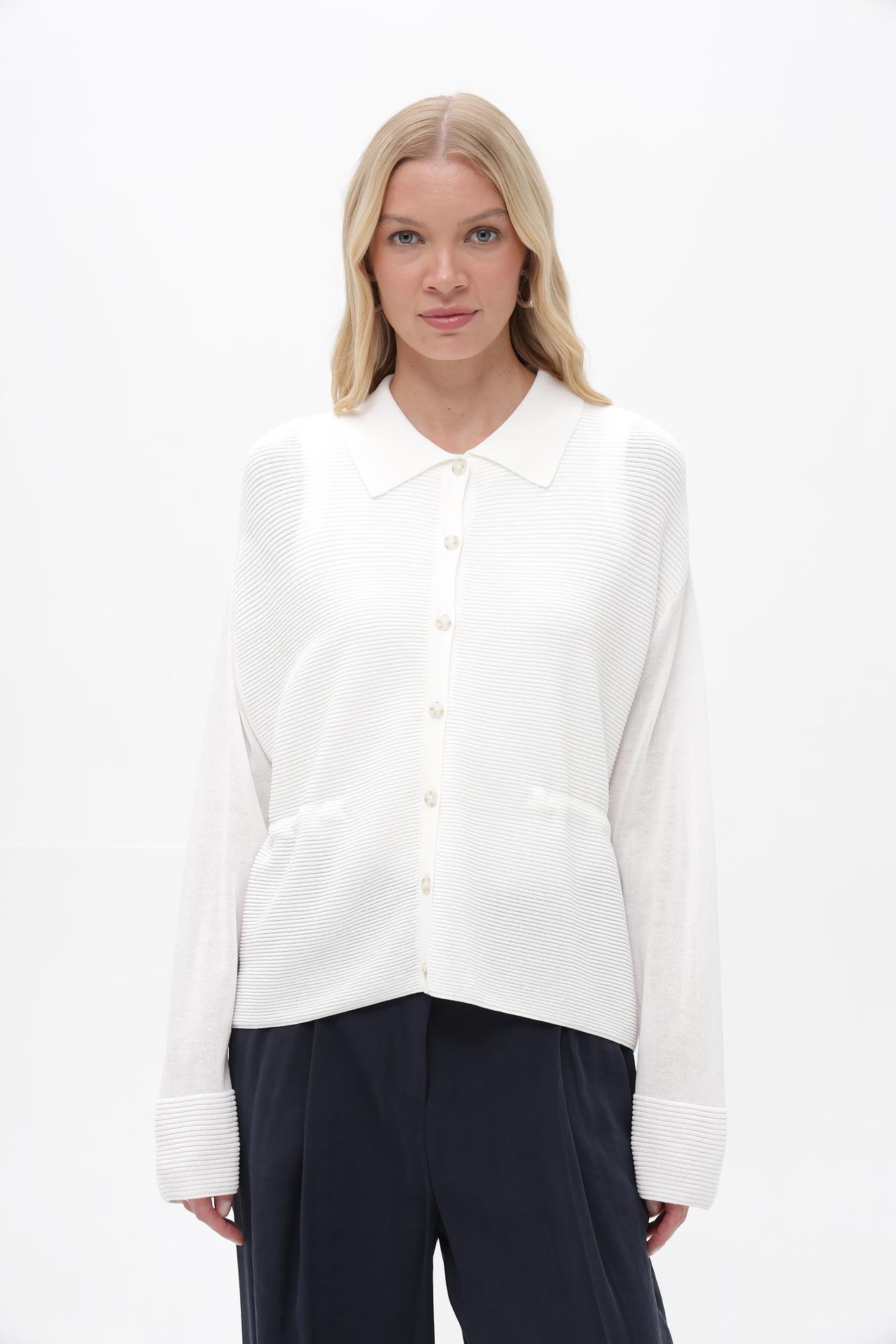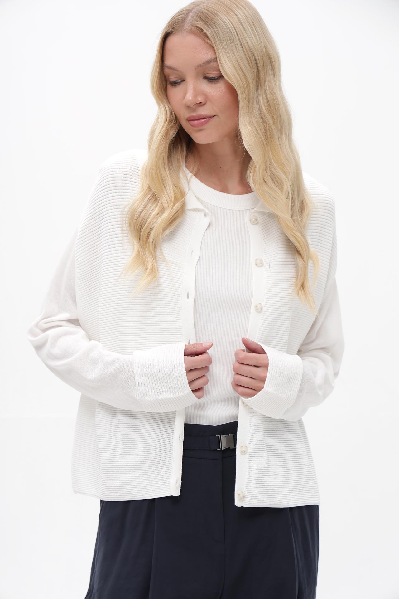 Белый трикотажный жакет от Oui – это воплощение элегантности и комфорта в вашем гардеробе. Изготовленный из мягкой и приятной к телу вискозы (88%) с добавлением полиамида (12%), он идеально подходит для создания утонченных и женственных образов. Жакет легко сочетается с различными элементами гардероба, будь то классические брюки, джинсы или юбки.