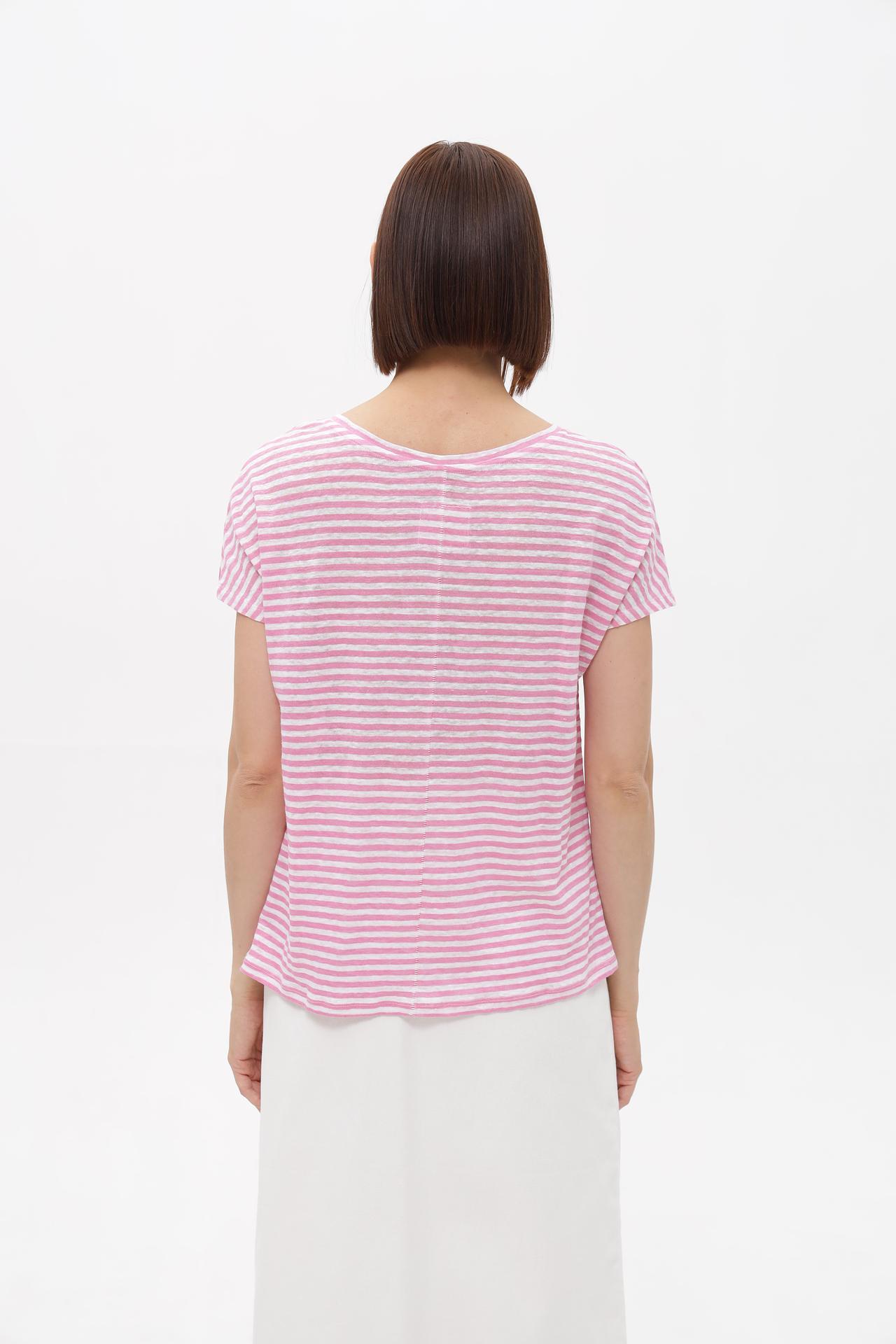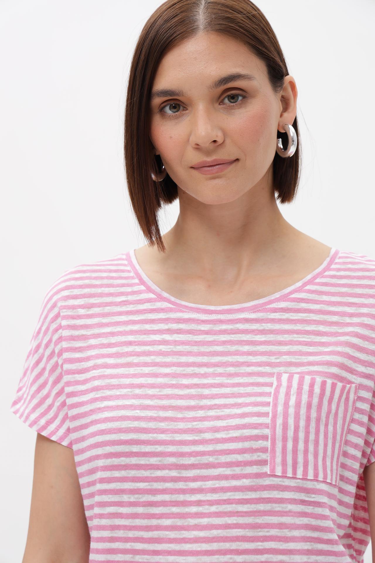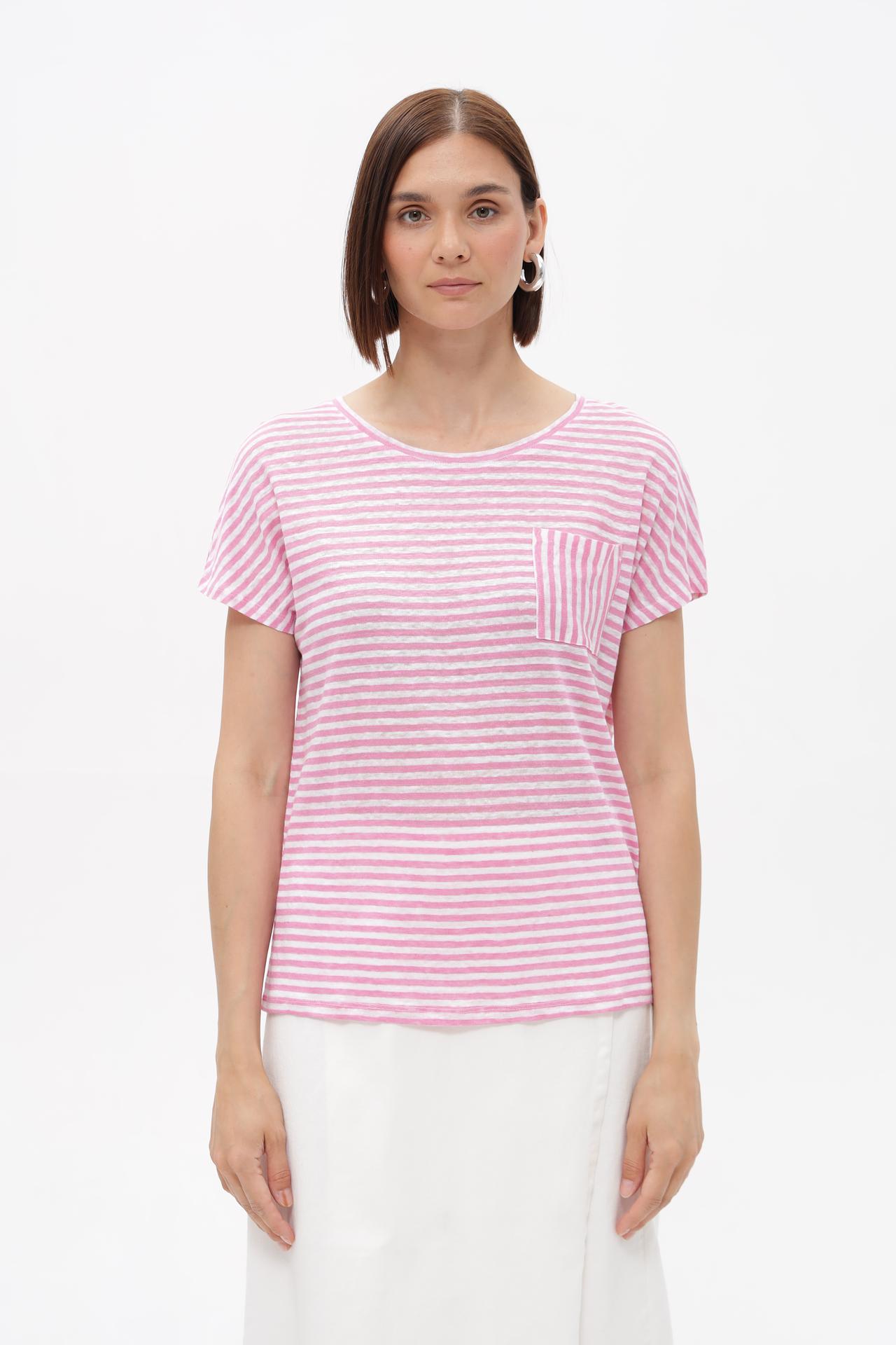 Легкая и комфортная футболка из 100% натурального льна — идеальный выбор для летнего гардероба. Мягкий лен обеспечивает отличную воздухопроницаемость и дарит ощущение свежести в жаркую погоду. Свободный крой не сковывает движения, а актуальный дизайн в полоску добавляет образу непринужденности и стиля.