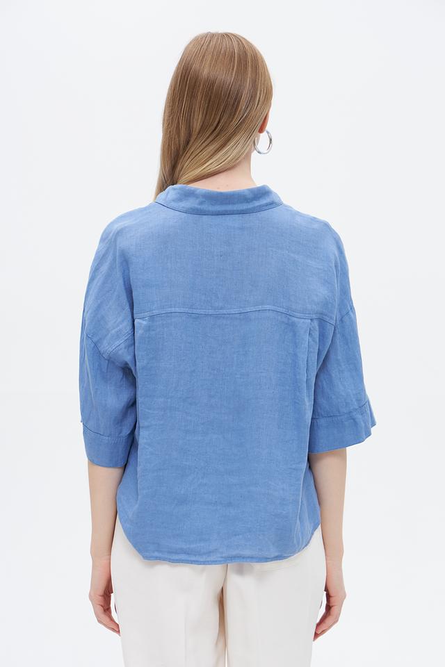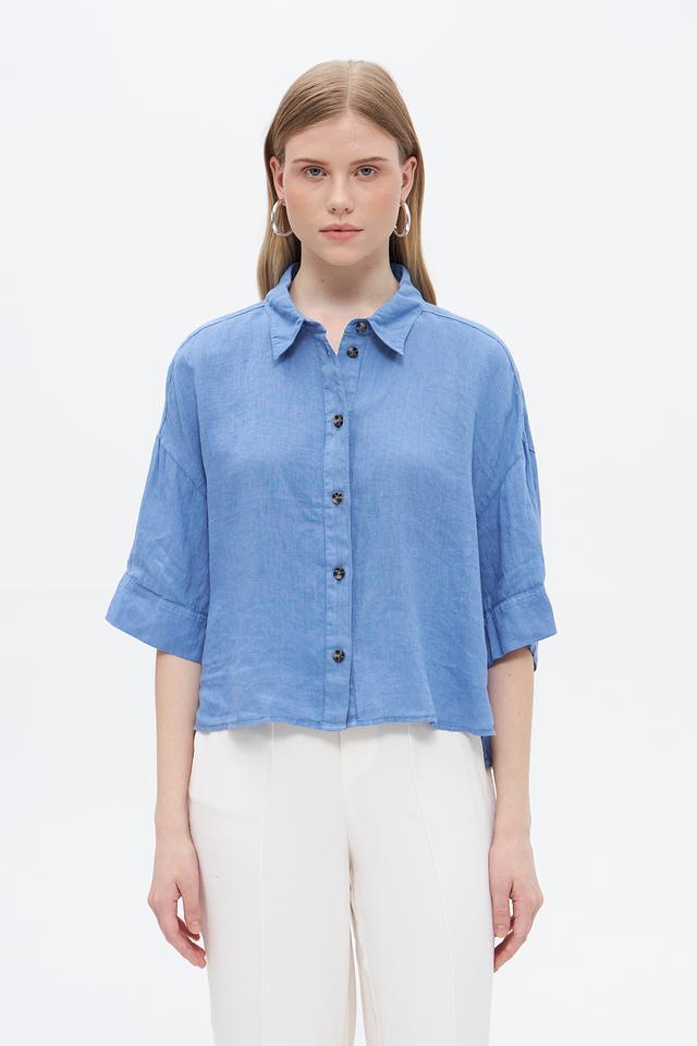 Блуза Oui из льна голубая