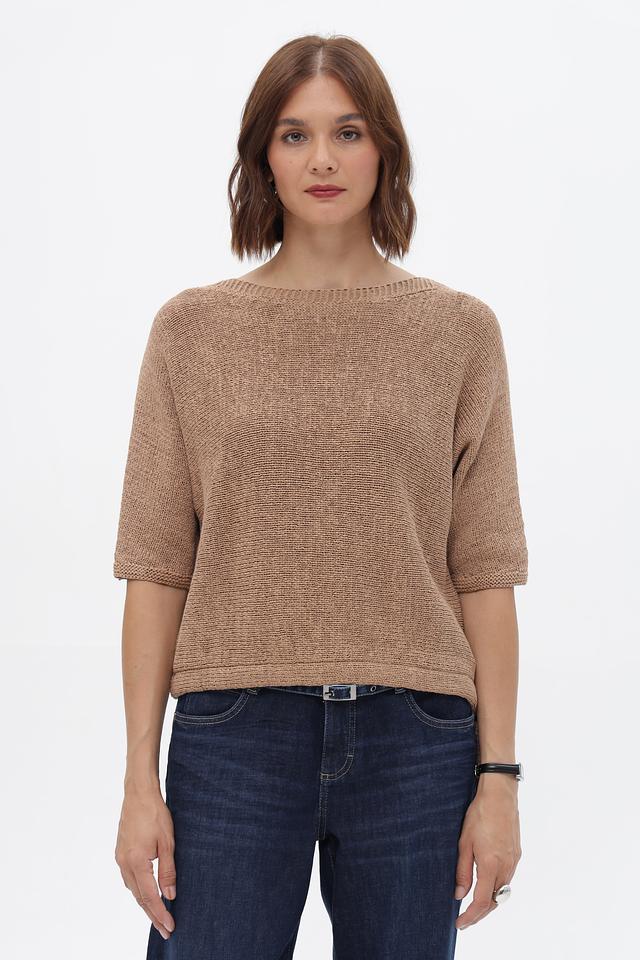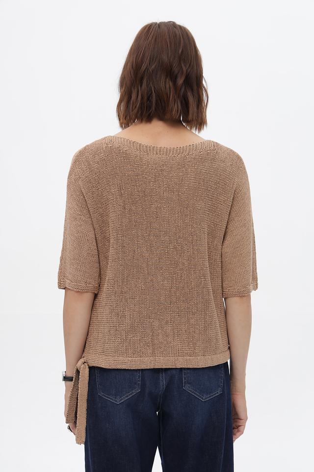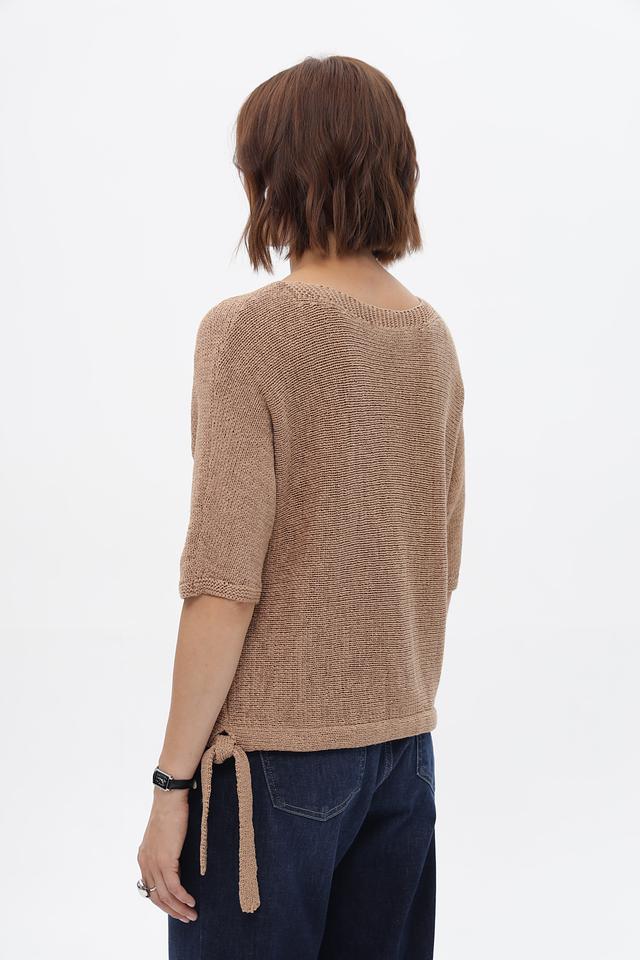 Бежевый пуловер от Oui из хлопка с полиамидом. Модель с короткими рукавами и завязками по бокам. Идеально дополнит повседневный образ. Состав: хлопок 75%, полиамид 25%