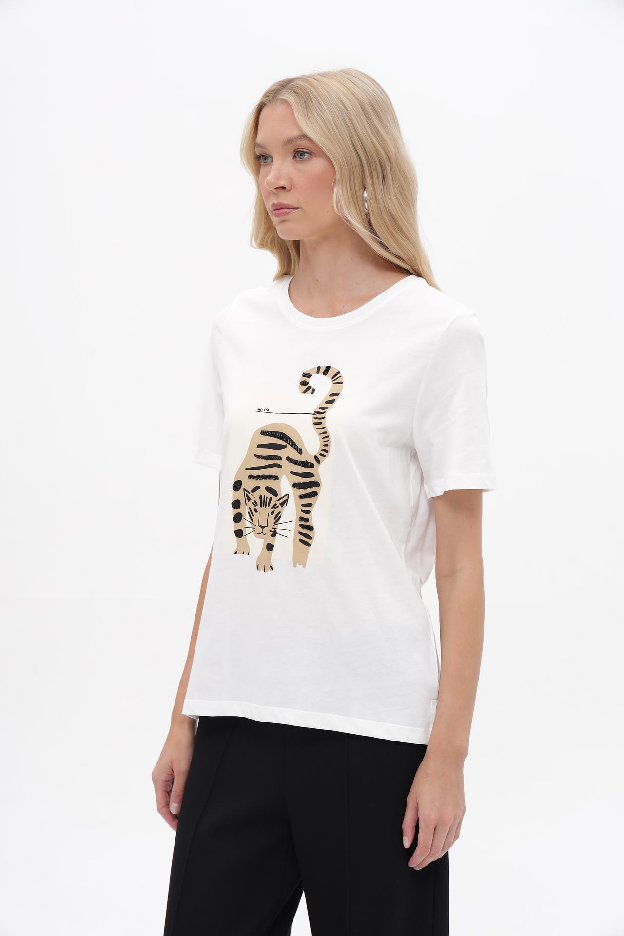 Футболка Oui Белая с принтом тигра