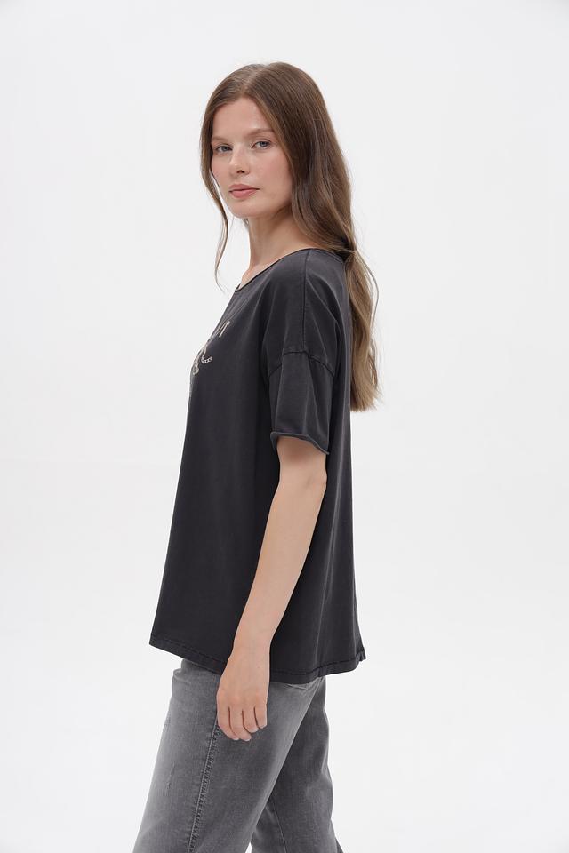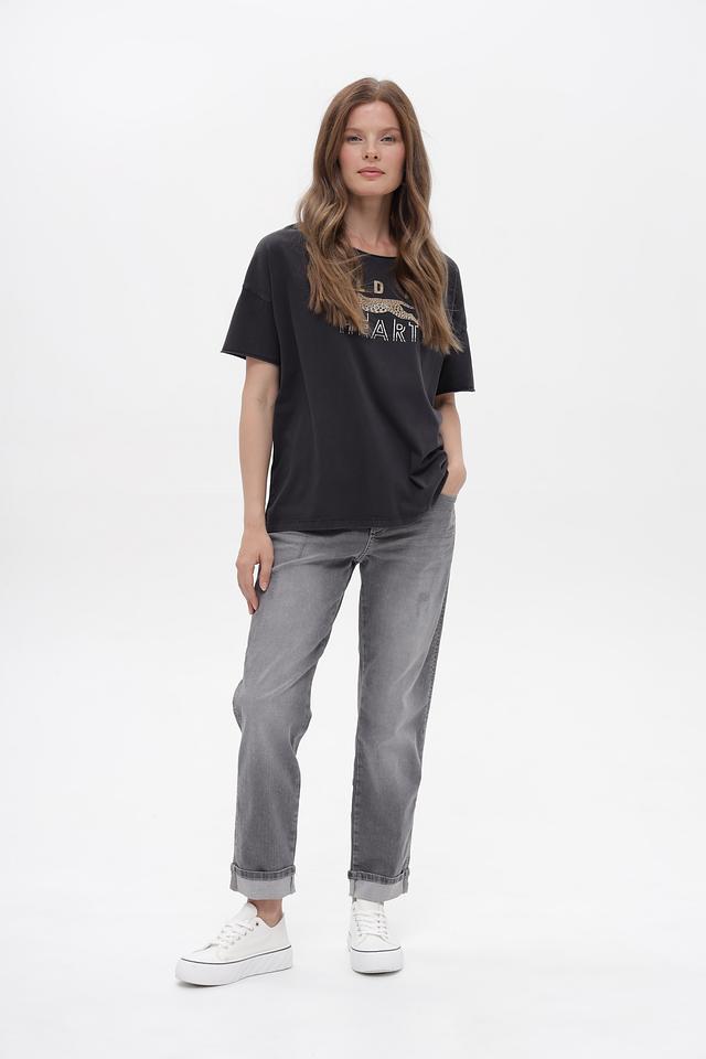 Женская футболка Oui графитового цвета с оригинальным принтом “Wild at Heart”. Модель выполнена из 100% хлопка, обеспечивающего комфорт в носке. Свободный крой и округлый вырез. Состав: хлопок 100%