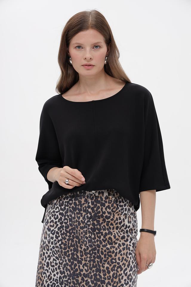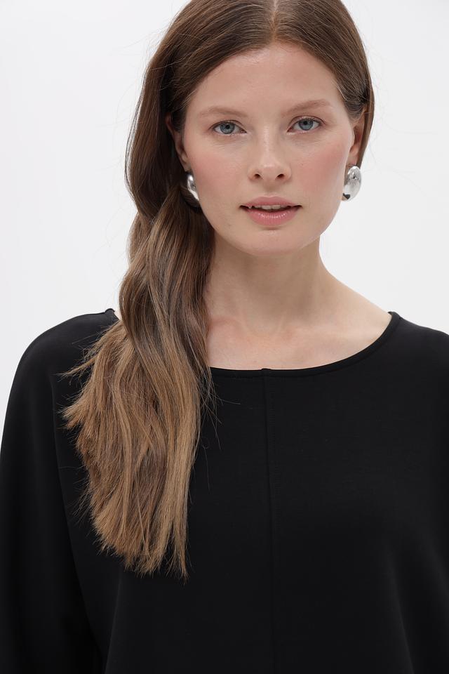 Чёрный пуловер от Oui из мягкой вискозы с полиэстером и эластаном. Модель с рукавом 3/4 и округлым вырезом горловины. Идеально дополнит базовый гардероб. Состав: вискоза 55%, полиэстер 41%, эластан 4%