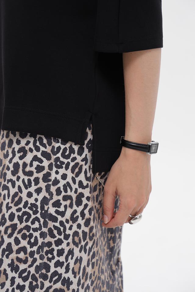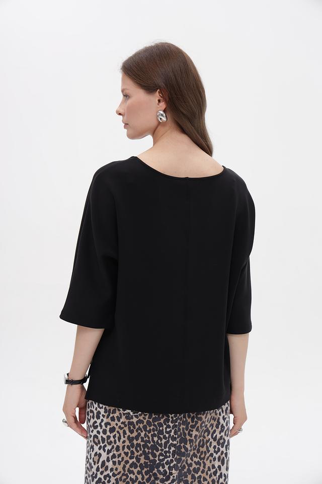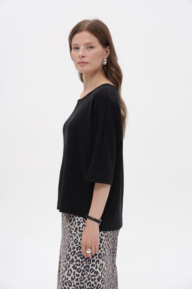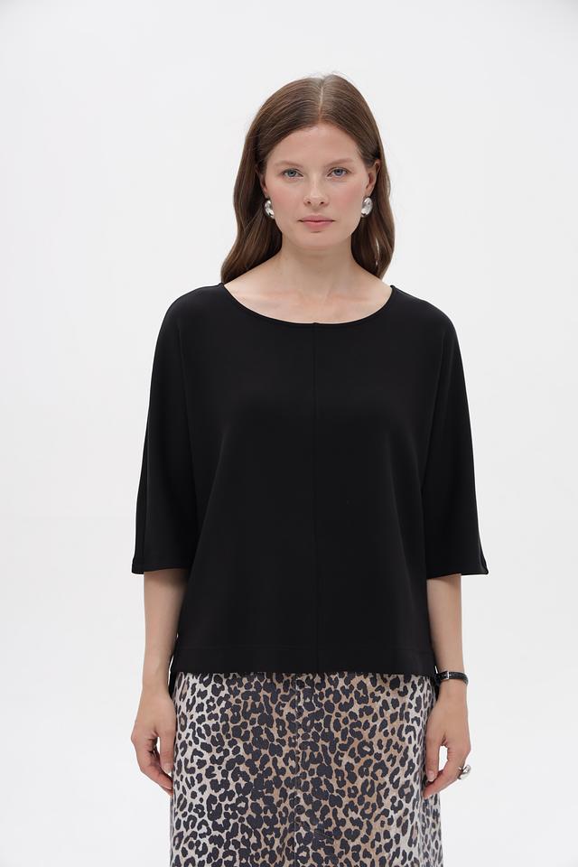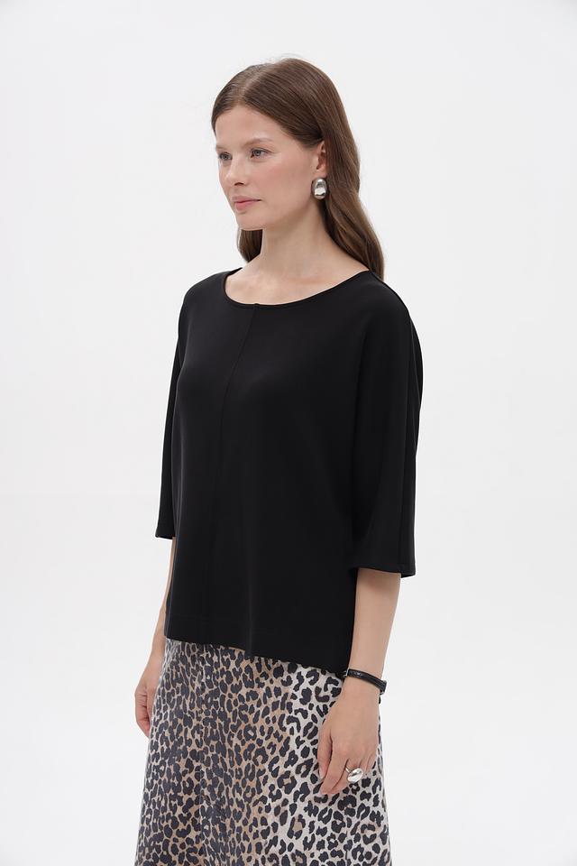 Пуловер имеет прямой крой, округлый вырез горловины и рукав три четверти, что делает его универсальным для различных случаев. Благодаря лаконичному дизайну, он легко сочетается с юбками, брюками и джинсами.