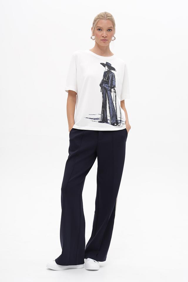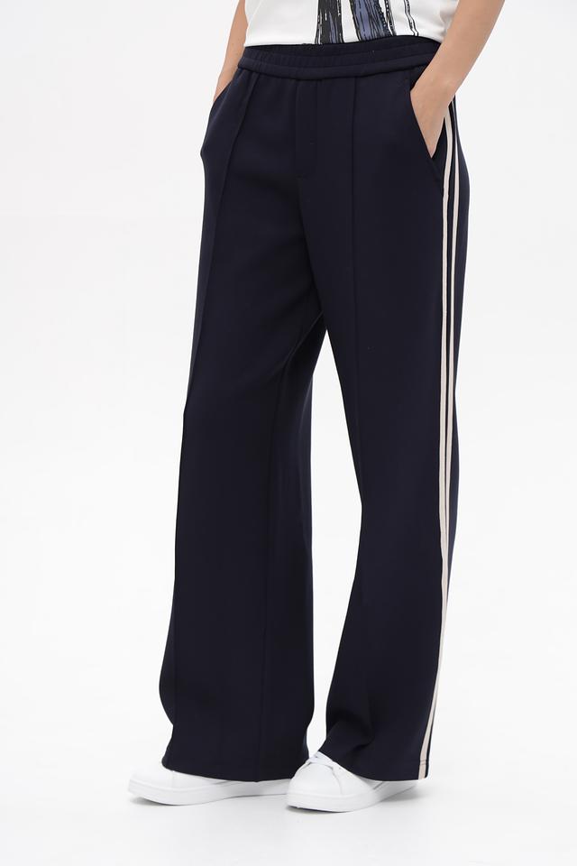 Представляем стильные брюки клёш от бренда Oui. Модель выполнена в тёмно-синем цвете и отличается лаконичным дизайном с контрастными полосками по бокам, добавляющими динамики образу.