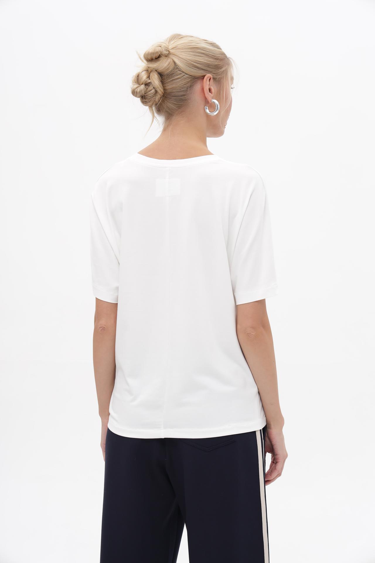 Женская футболка Oui из мягкой смесовой ткани на основе хлопка и модала. Материал невероятно приятен к телу, хорошо пропускает воздух и позволяет коже дышать, а эластан в составе обеспечивает комфортную посадку и сохранение формы. Эта базовая модель белого цвета станет универсальной основой для ваших повседневных образов.