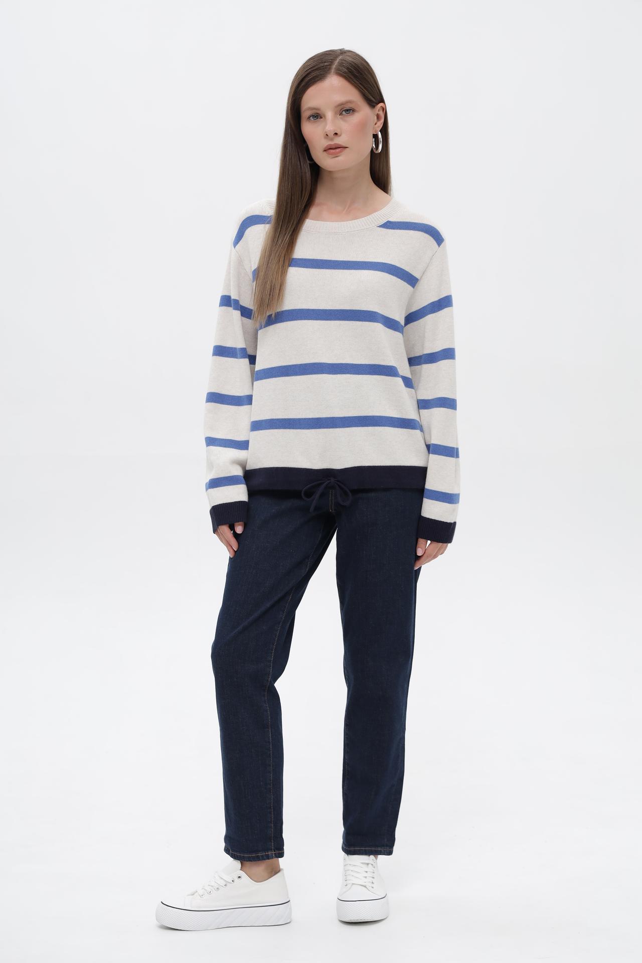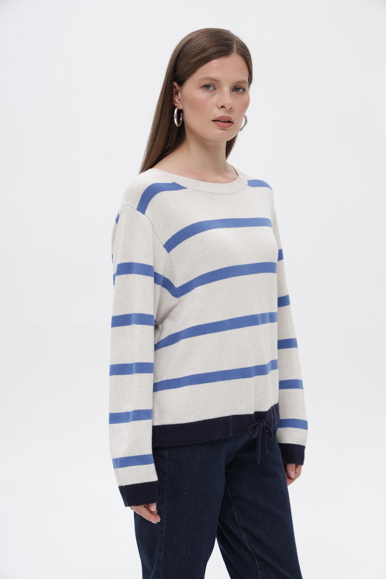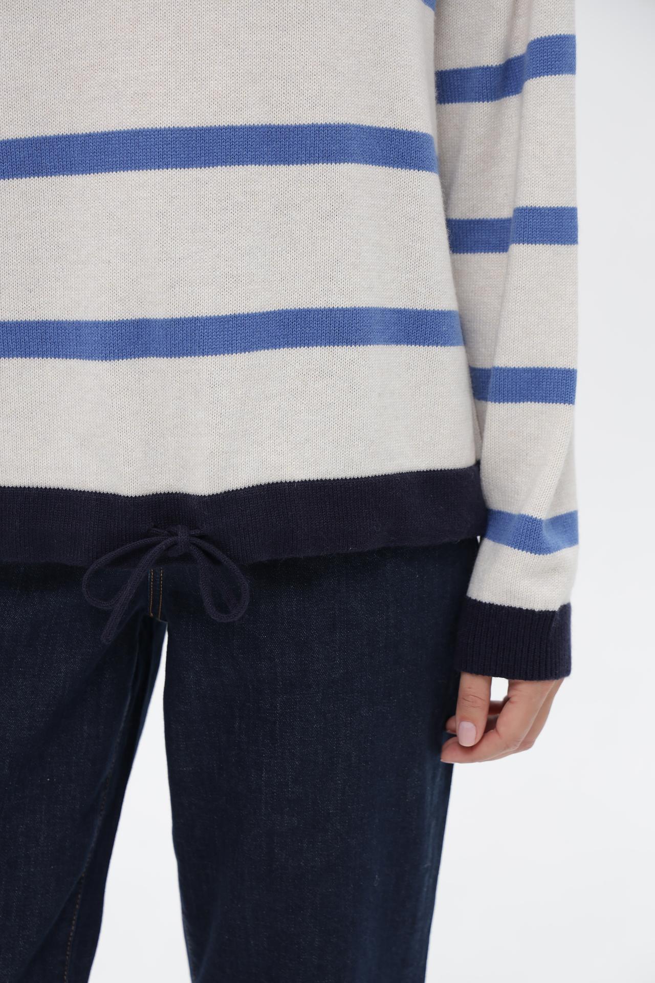 Пуловер Oui бежевый в синюю полоску с кулиской