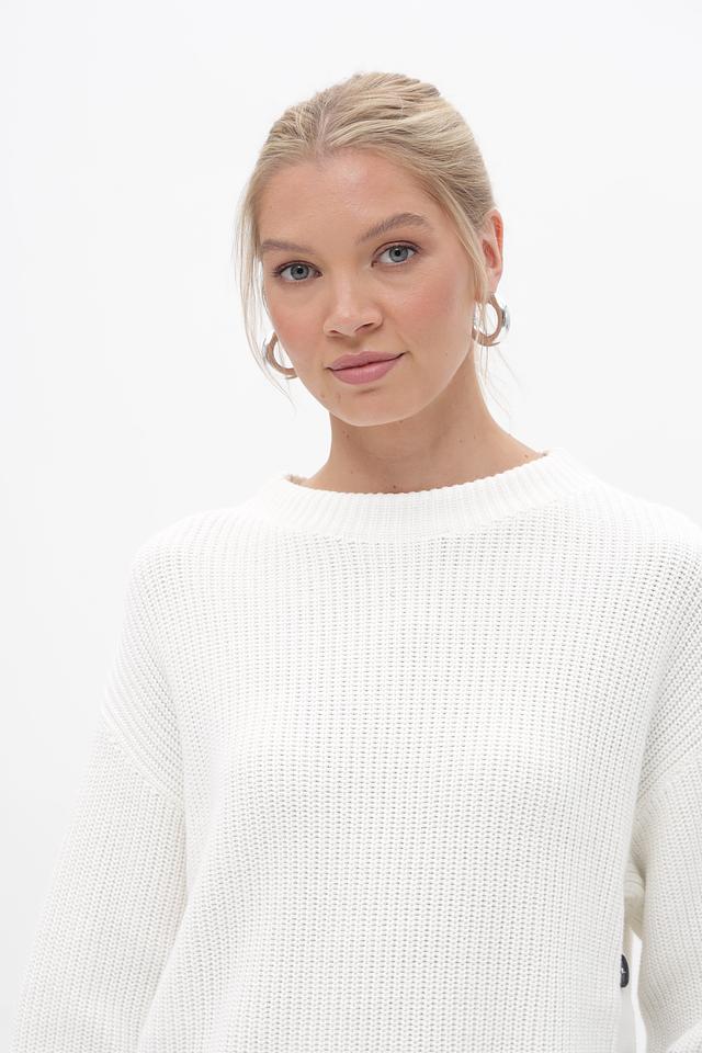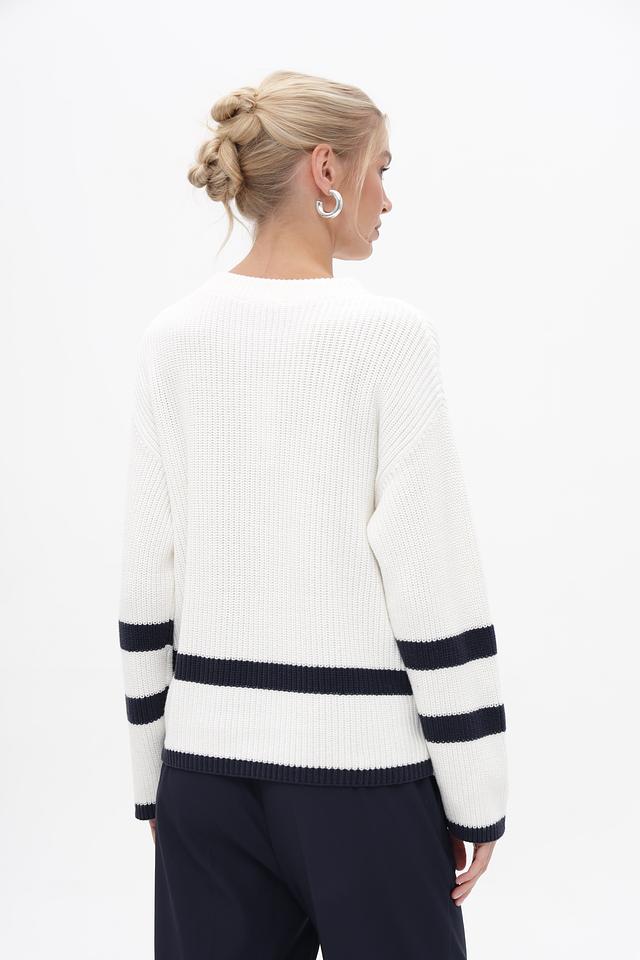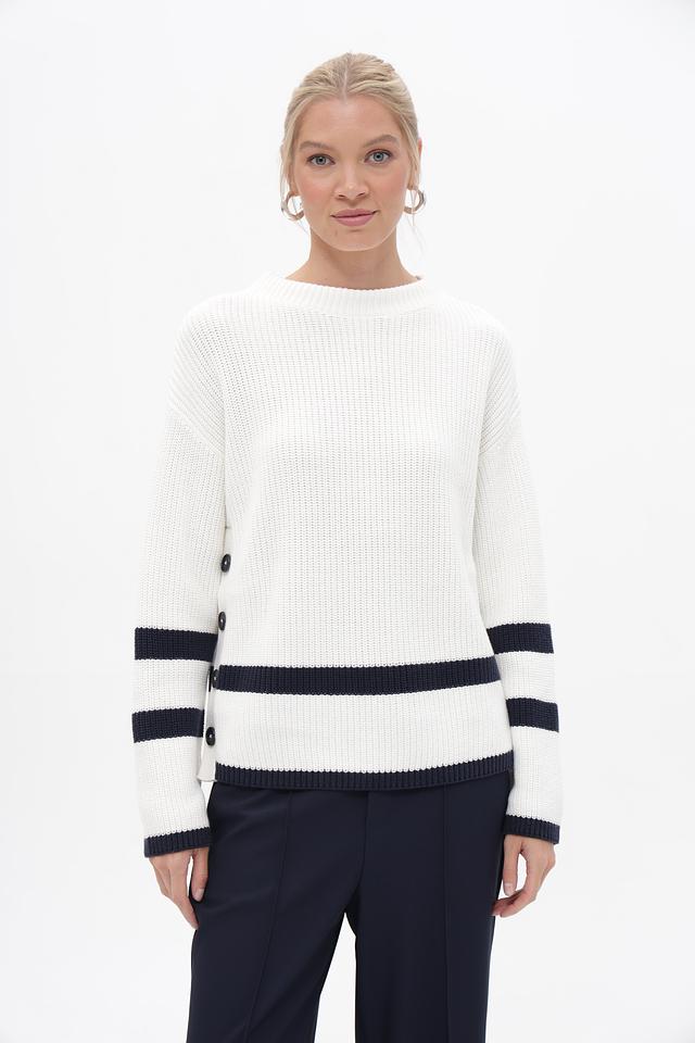 Белый пуловер Oui с контрастными темно-синими полосками. Модель выполнена из 100% хлопка, обеспечивающего комфорт и приятные ощущения при носке. Удобный крой и стильный дизайн. Состав: хлопок 100%