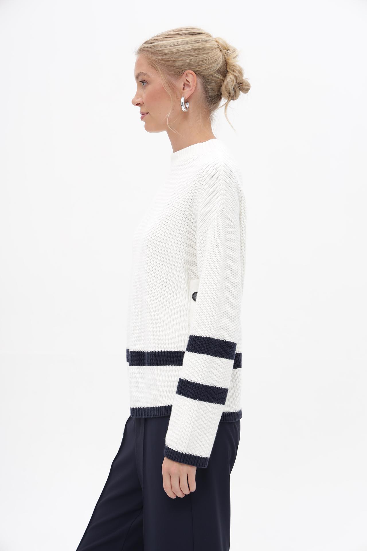 - Декоративные детали. Полоски и пуговицы делают этот пуловер особенным и стильным. Они позволяют создать уникальный образ и подчеркнуть вашу индивидуальность.