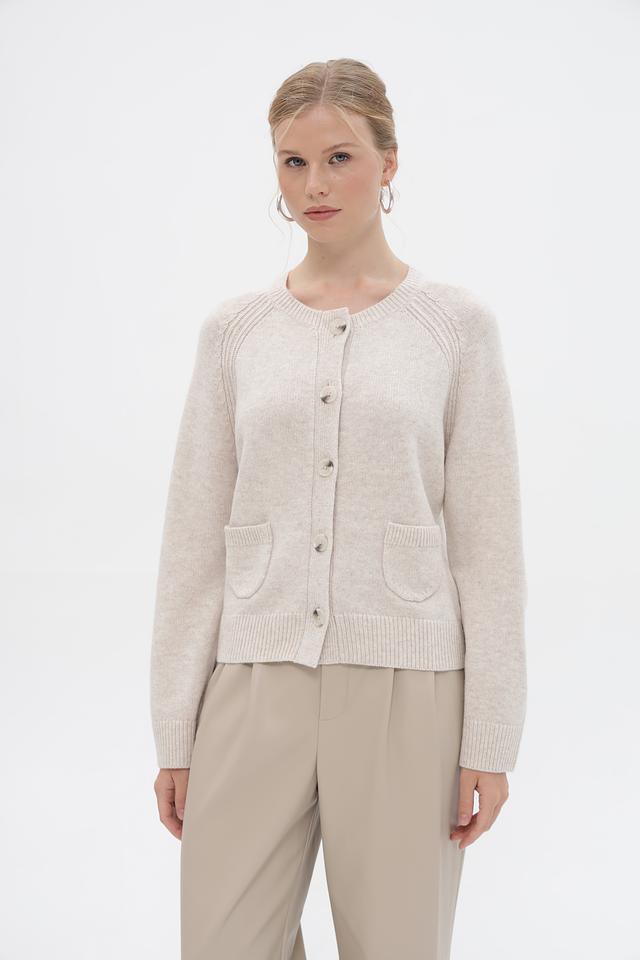 Бежевый кардиган Oui из мягкого вязаного полотна станет отличным дополнением к вашему образу. Изделие выполнено из смеси шерсти, полиамида и модала, что обеспечивает комфорт и удобство в носке. Состав: шерсть 50%, полиамид 30%, модал 20%