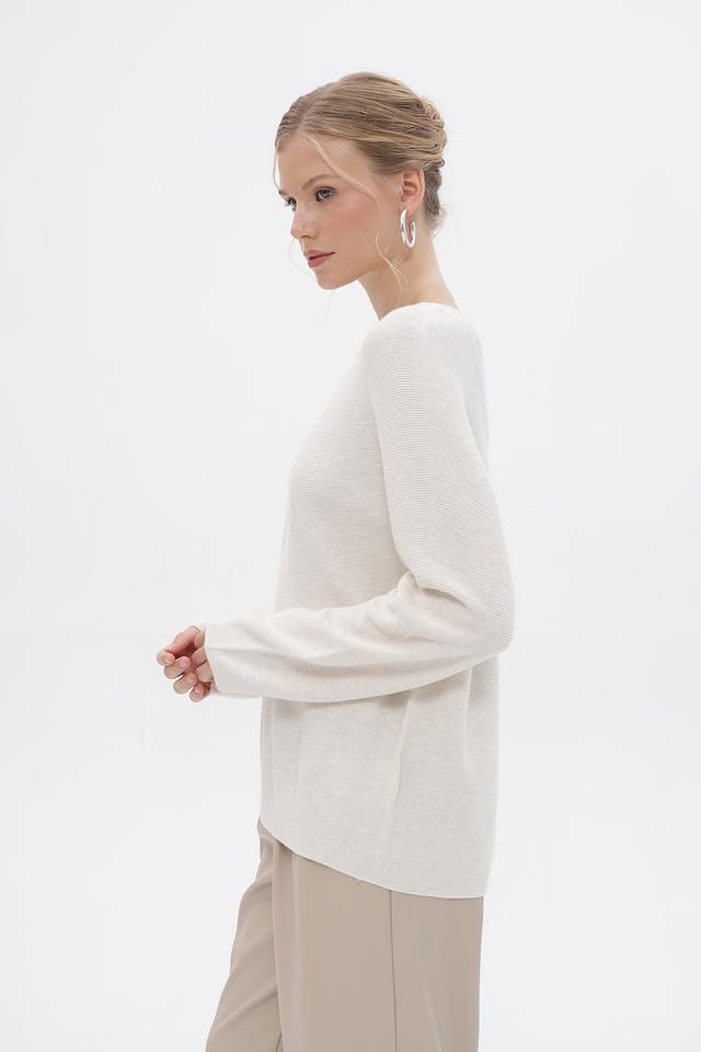 Бежевый пуловер от Oui из мягкого трикотажа. Изготовлен из натурального хлопка с добавлением вискозы, шелка и кашемира для комфорта и износостойкости. Состав: хлопок 57%, вискоза 30%, шелк 10%, кашемир 3%