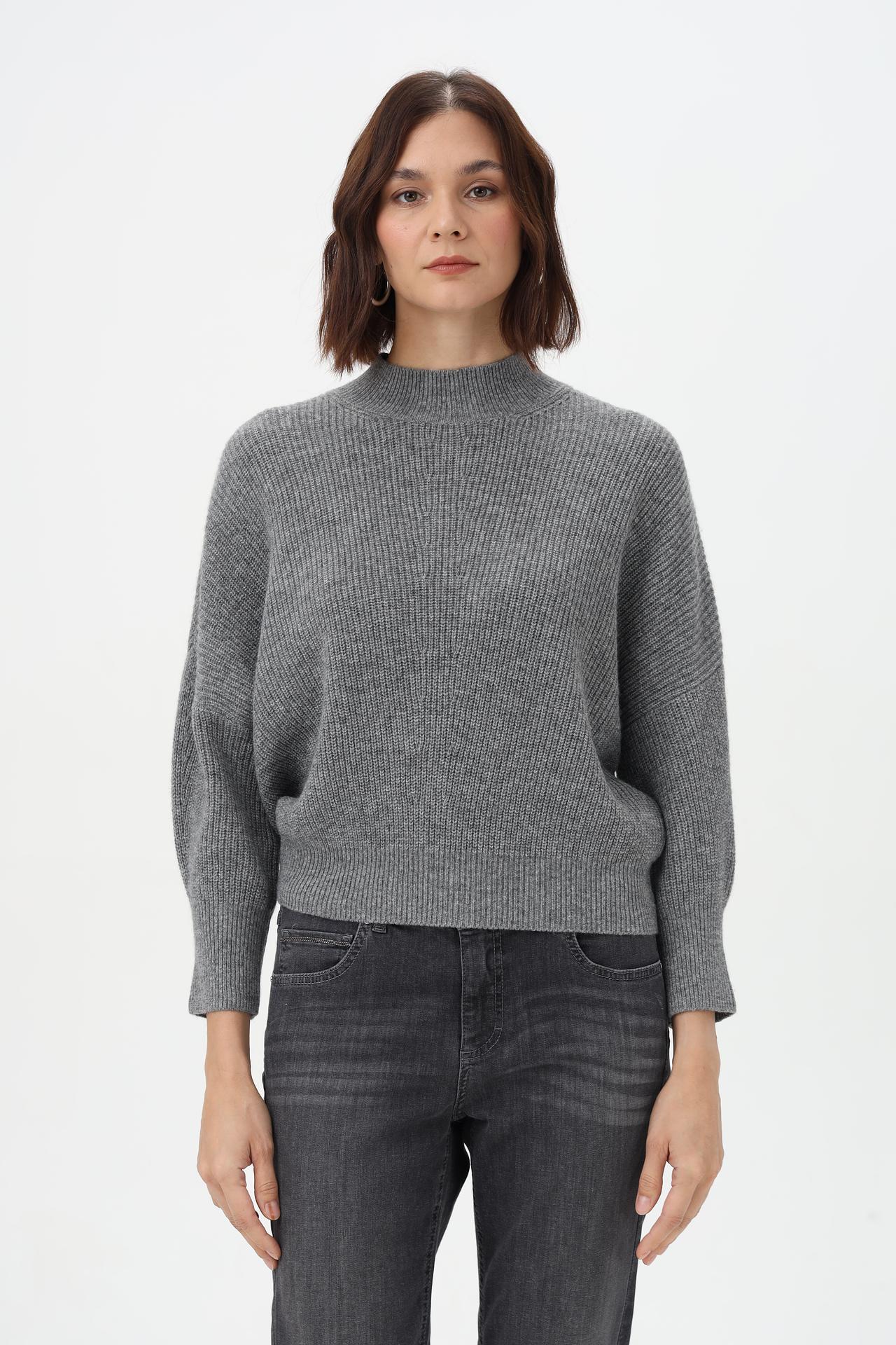 Стильный и комфортный пуловер от бренда Oui станет базовым элементом вашего гардероба. Модель выполнена в классическом сером цвете, который легко сочетается с различными оттенками и стилями одежды. Укороченный силуэт и объемные рукава создают модный образ, а высокий воротник-стойка добавляет элегантности.