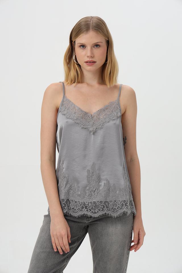 Топ Oui с кружевом серый